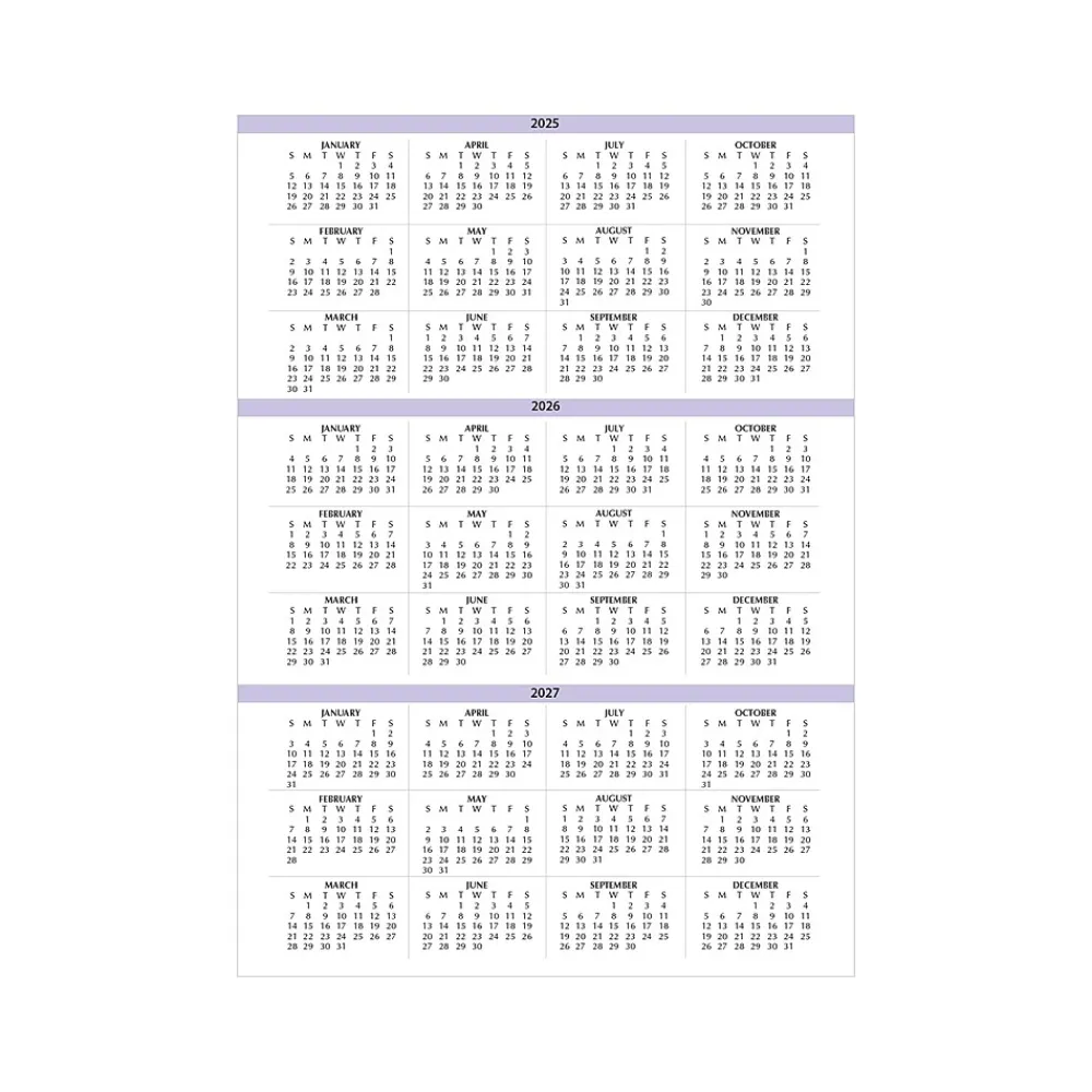 - Three-year calendar reference page for long-range planning