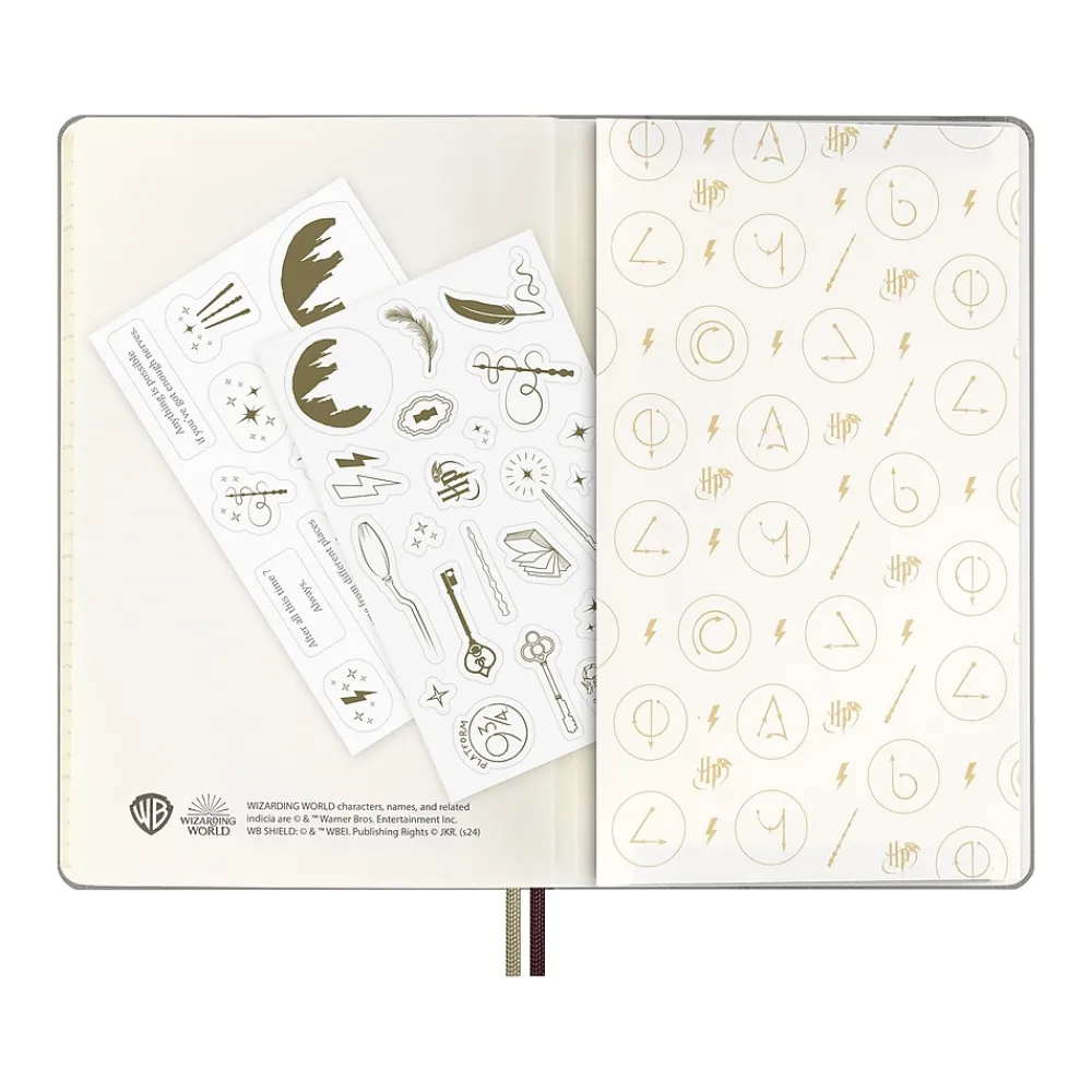 Unlock magic every day over the next year with this 12-month diary. This Moleskine Limited Edition Harry Potter Wingardium Leviosa weekly planner has a glow-in-the-dark cover and a memorable quote from the story inside. Flick through the pages to spot some important dates from the wizarding world, and grab your favorite pen to practice wand movements with the themed endpapers. Dated from January 2025 to December 2025, this Harry Potter diary has a weekly notebook layout to combine both planning and note-taking: each two-page spread shows the days of the week horizontally on the left, with a ruled page for notes, tasks, and thoughts on the right. The opening section includes a calendar and pages structured for travel planning and organization. Each diary and notebook in this collection features a spell that conjures up an iconic moment from the story. From tentative beginnings with Wingardium Leviosa to Protego Maxima and the epic final chapter. In the wizarding world, a spell is a form of expression that unlocks powerful magic, but for Harry Potter fans each familiar spell unlocks memories, evokes emotions, and provides inspiration. The real magic, of course, happens each time you express yourself with pen and paper. This diary is your everyday reminder that noting down plans by hand is the first step in making them come to life.