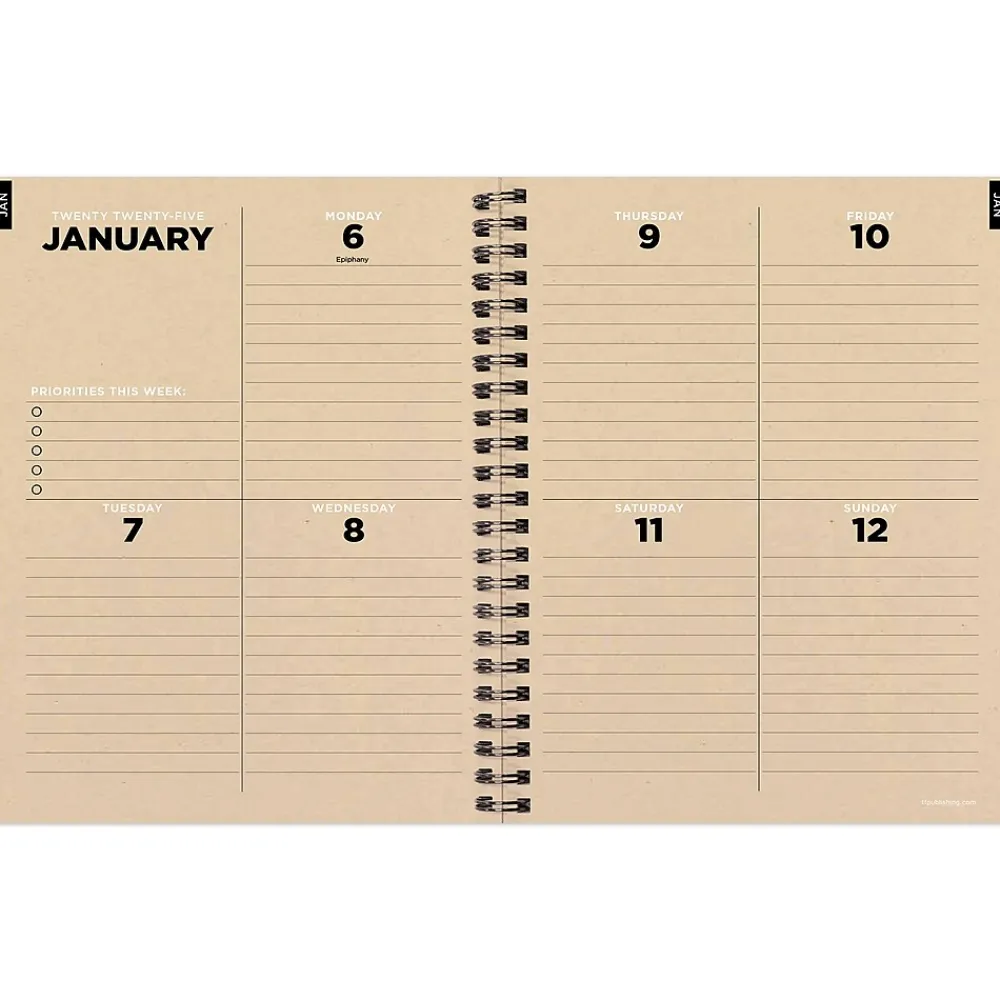 - Inside pages are designed with faux monthly tabs for easy access to weekly planning