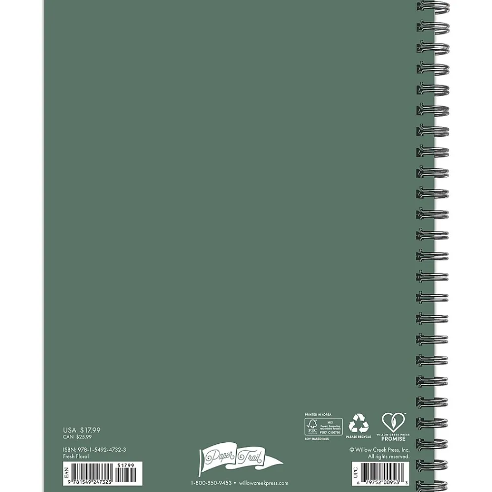 This is a perfect inspirational gift that is the ideal size for school, office, handbag or backpack. This planner includes a spiral binding, monthly color-coded faux tabs which make accessing information a breeze. Includes 300 stickers to dress up special days like birthdays and other upcoming events on your social calendar. Additional features include weekly checklists, a priority tracker, along with additional notes pages and space for passwords and contacts in the back. Protected by a durable, plastic-free cover, this planner also includes a handy storage pocket offering a secure space for papers, receipts, and other important items. Bonus pages include 2 years year-at-a-glance view (2025 and 2026) for long term planning. Also includes moon phases (CST), standard U.S. and international holidays. Date Range January through December. Willow Creek Press is commitment to eco-friendly efforts to make our products more sustainable, our planners are printed with soy-based inks on high-quality paper.