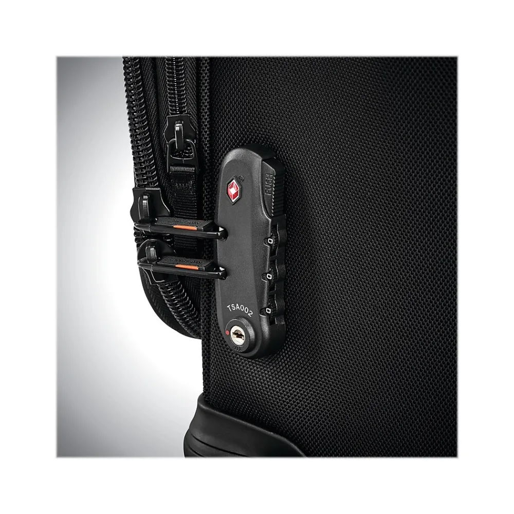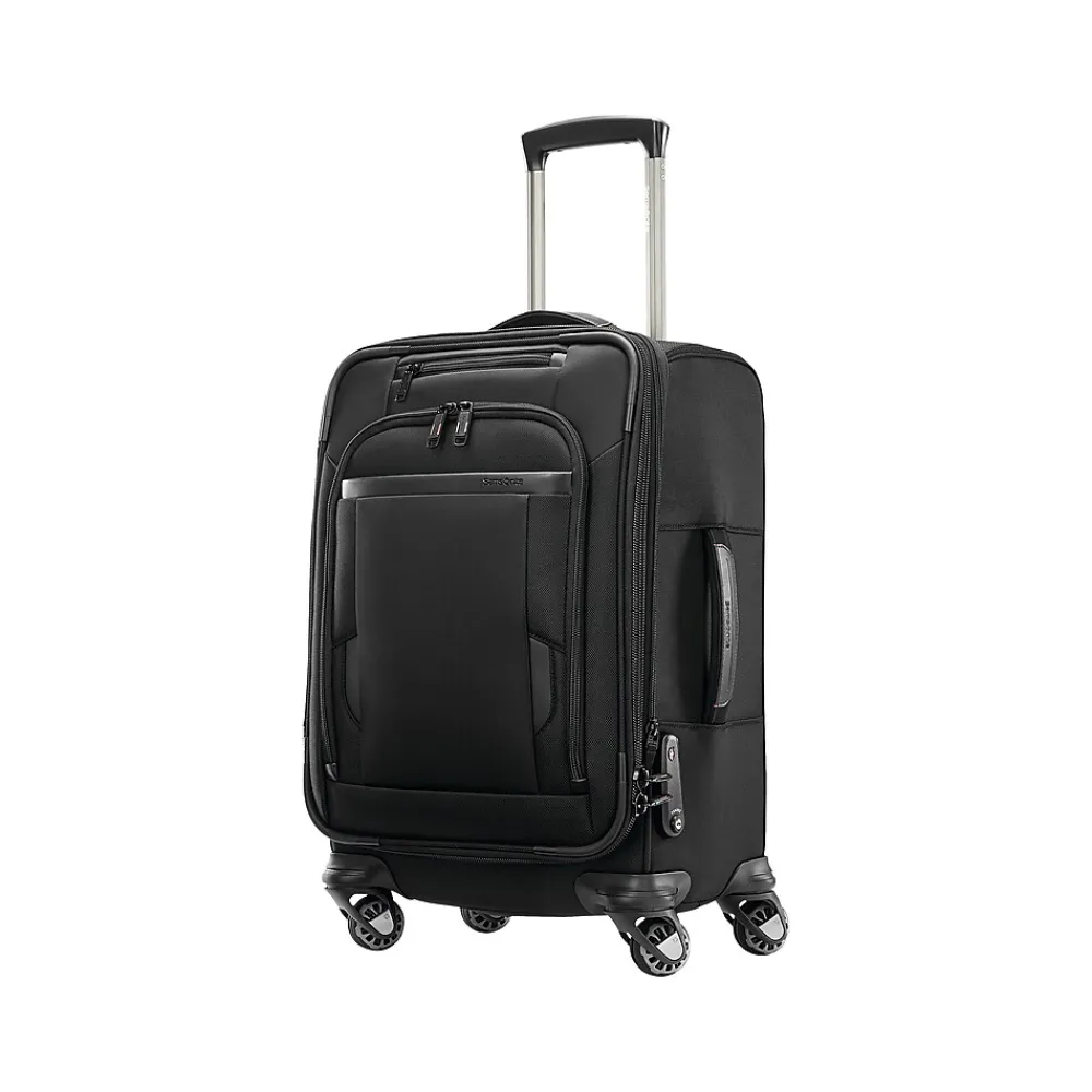 Travel with the Samsonite Pro bag that goes the distance with durable construction and upgraded conveniences. When you live out of your suitcase, details matter. Drop your phone in the dedicated pocket, and it charges wirelessly. Guard your identity with the RFID pocket. Hang clothes neatly in the trifold suiter, and pack liquids in a Wetpak pocket. All in the durable yet sophisticated bag.