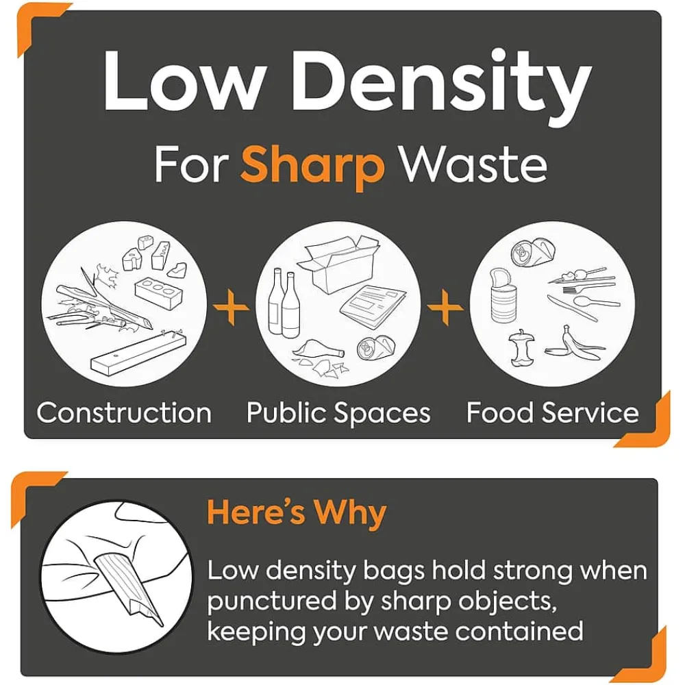 - Low-density and 0.9 mil thick bags keeps heavy and wet trash and prevents from stretching holes in the bag
