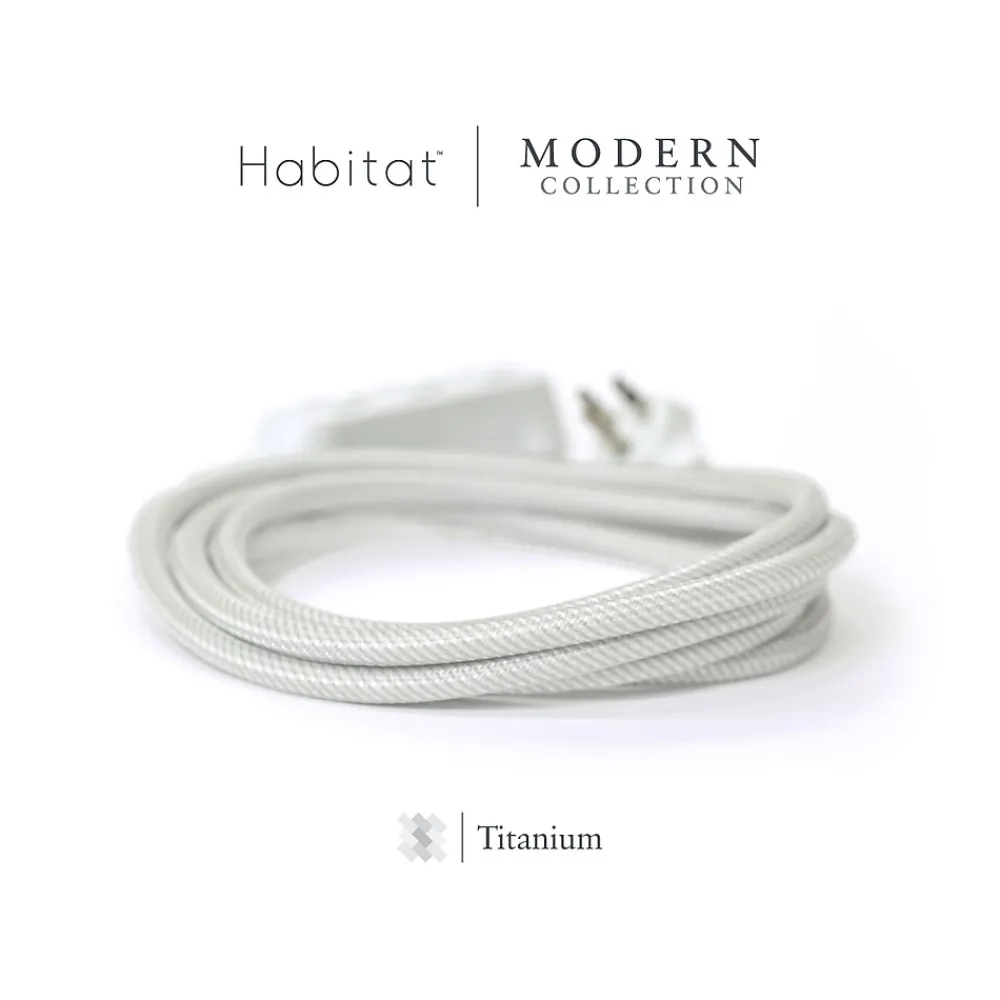 Plug in devices without leaving your desk using this extension cord. The 8′ length and right-angle plug access distant and hard-to-reach outlets, and the slim profile conserves space. This 360 Electrical Habitat Modern Collection 8′ braided extension cord has three AC outlets for multi-device connectivity.
