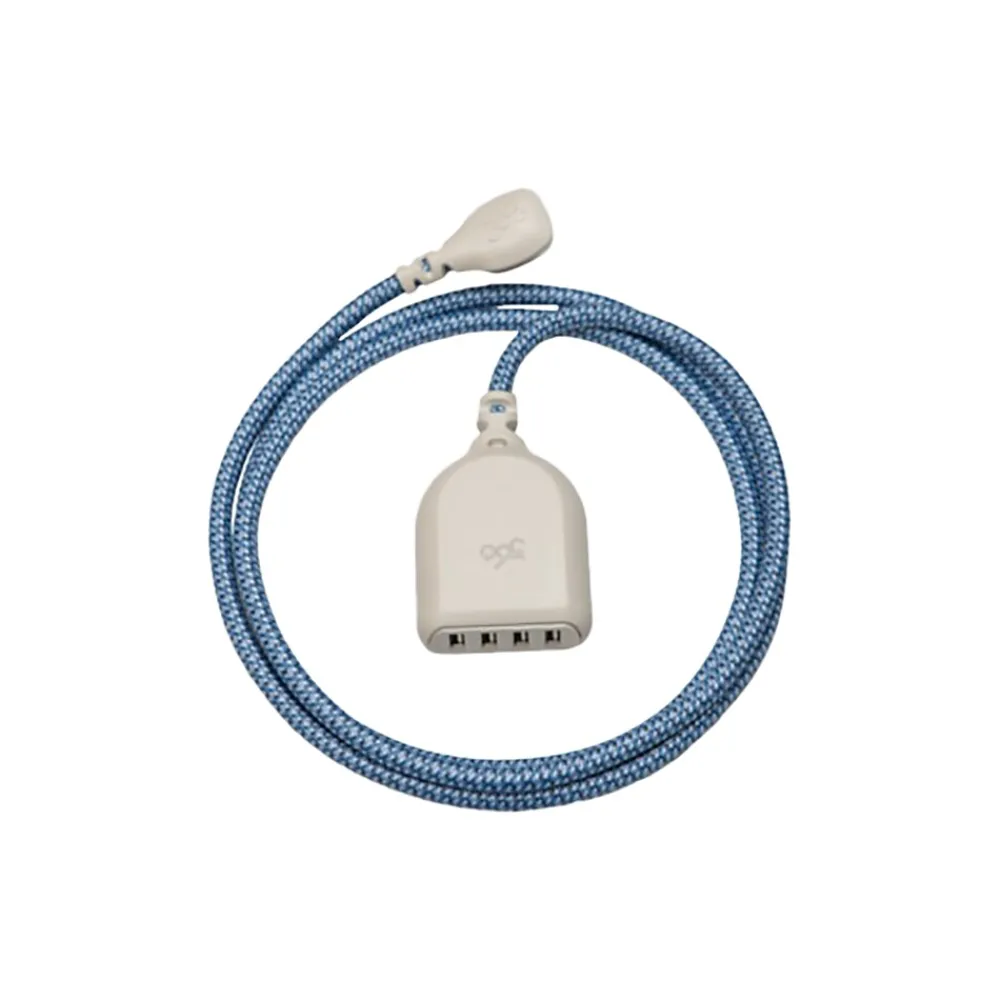 Recharge multiple devices at once with this USB cable. The 6-foot length extends your reach to access out-of-the-way outlets, while the premium round braided cord stands up to heavy use without tearing or fraying. Featuring four built-in USB ports, this 360 Electrical Habitat 4.8-amp 6-foot summer twilight-colored USB cable with four ports lets you charge up to four devices at once.