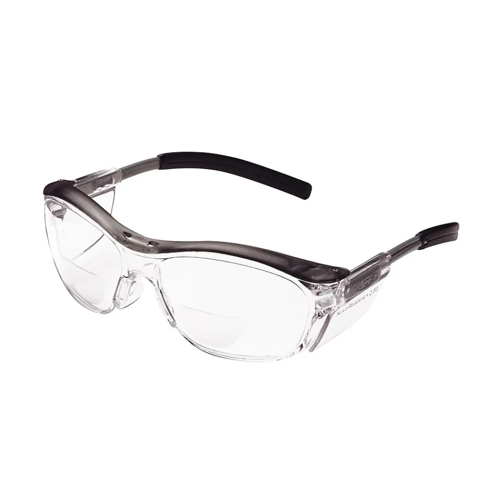 3M Safety Glasses With Gray Plastic Frame, 2.5 Diopter is made of clear polycarbonate anti-fog lenses. It features adjustable temples and a soft universal-fit nosepiece for extra comfort.