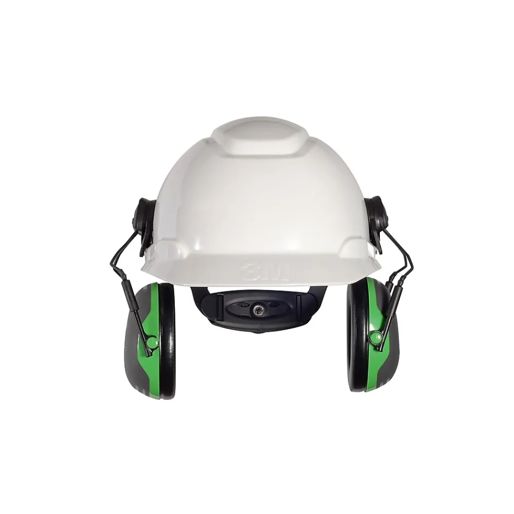 3M Occupational Health & Env Safety X-Series Black & Green Cap Mount Earmuffs offer active noise reduction. They can fit a variety of industrial safety hard hats and can be worn in three different positions for user comfort.