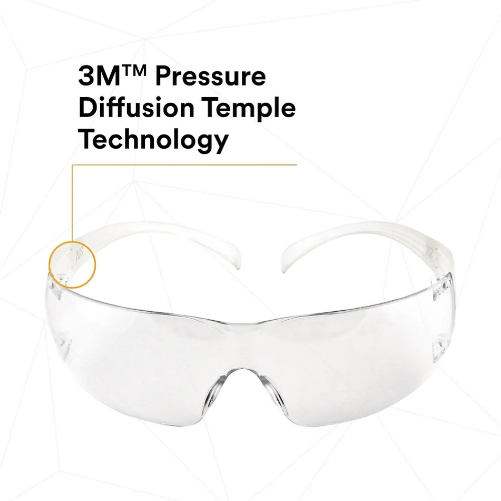 Features proprietary 3M™ Pressure Diffusion Temple Technology that helps diffuse pressure over the ear to enhance frame comfort while not compromising the security of fit across a diverse workforce.