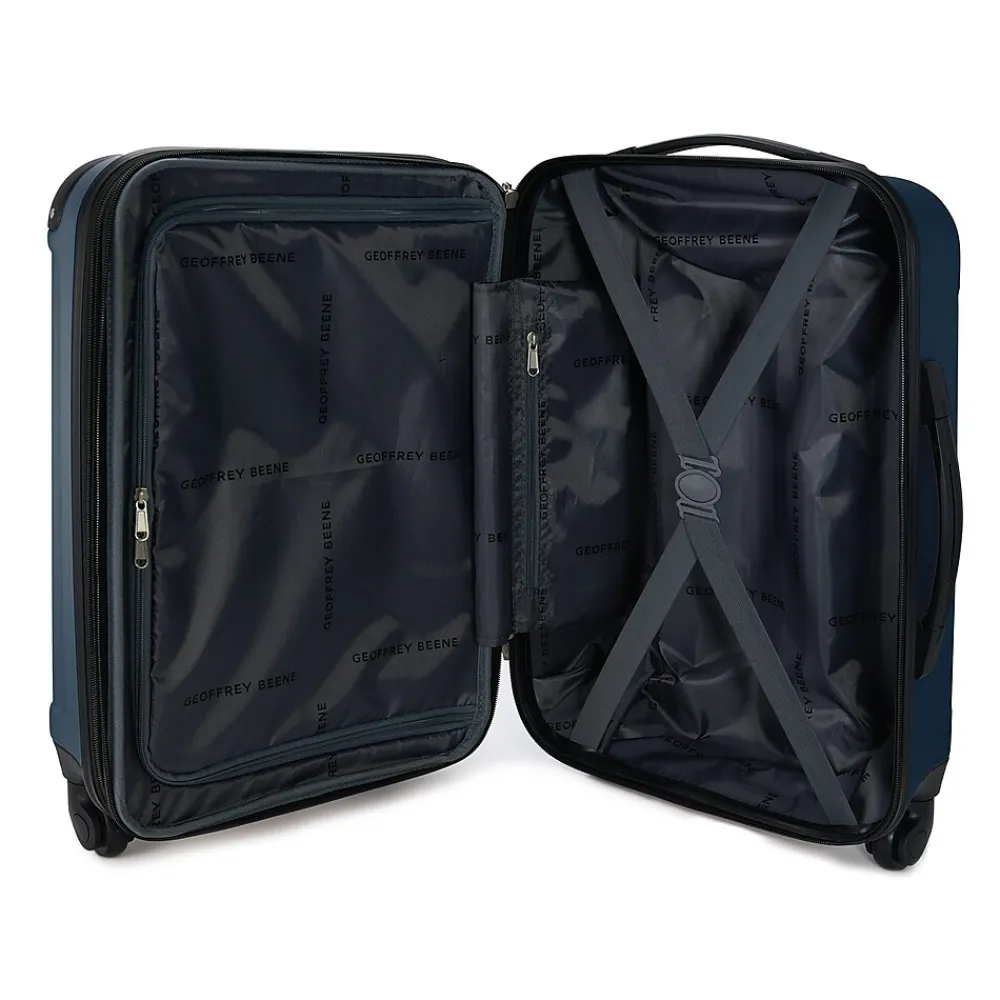 This fabulous Geoffrey Beene four-piece luggage set consists of 20″H and 26″H hard-side vertical cases, a carry-all tote, and a travel case. The two hard-side pieces are crafted of rugged ABS and have fully lined interiors. They feature 360-degree spinner wheels and telescopic handle systems. The set includes two soft pieces made of rugged polyester, with top zipper openings and a large main storage section. This is a must-have travel set.