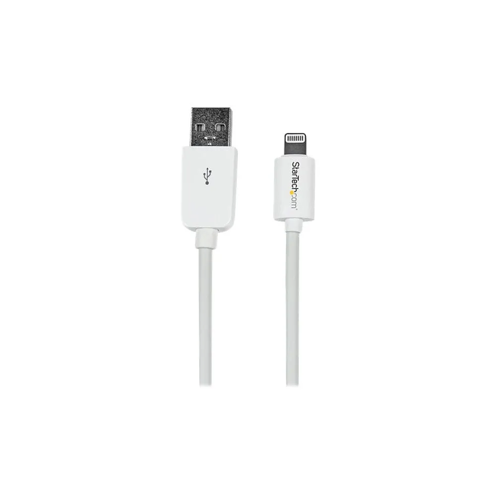 StarTech.comĀ® 10′ 8-Pin Lightning to USB data transfer cable easily plugs into your iOS-enabled device with either side facing up. The cable features heavy gauge wire for overcoming distance restrictions and allowing for full charging power at a distance of up to 3 m, with no loss of charge time. Suitable for iPhone, iPod, iPad and enables long-range syncing as well as charging. Features aluminum-mylar foil with braided shielding and supports high-speed USB data transfer rates of up to 480 Mbps.