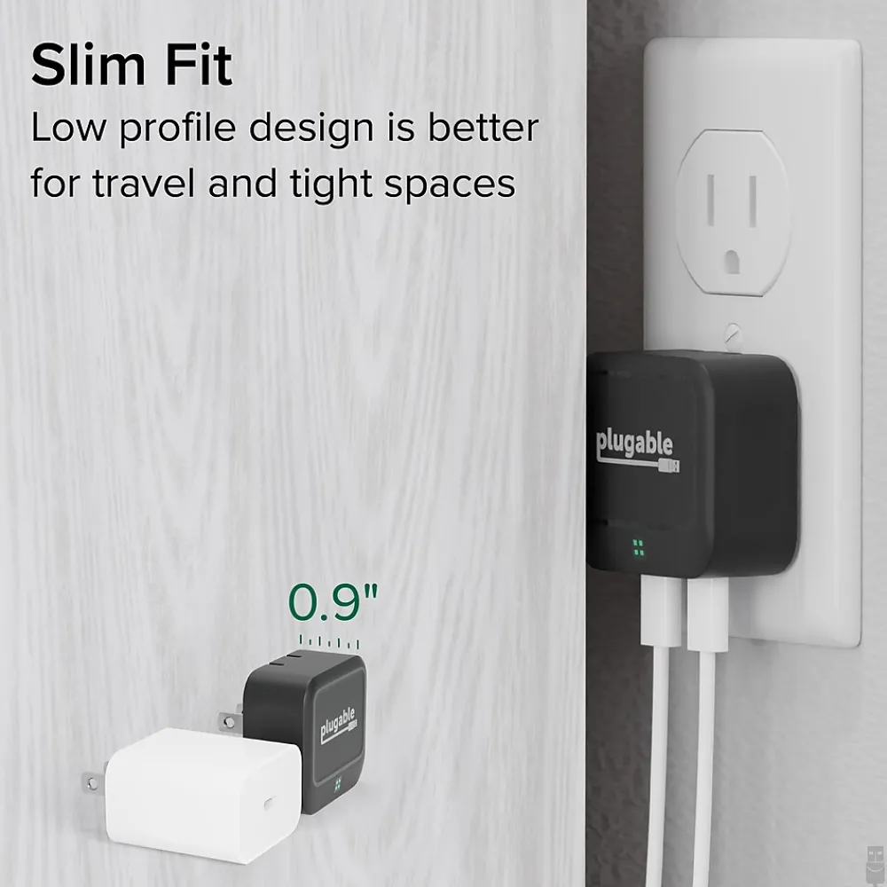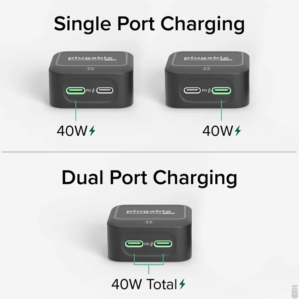 Plugable Dual USB C Wall Charger, 40W Foldable 2-Port Flat USB C Fast Charger Block