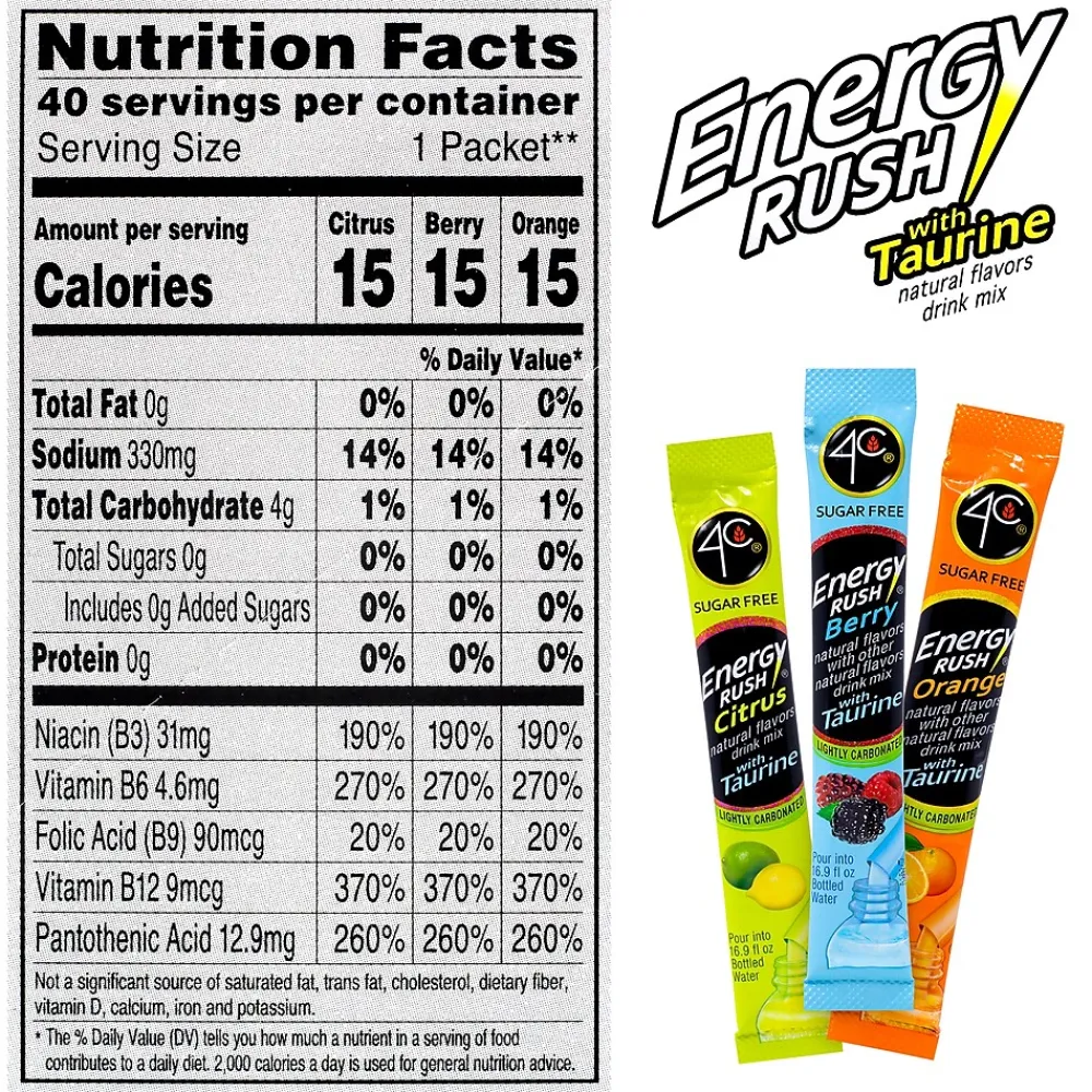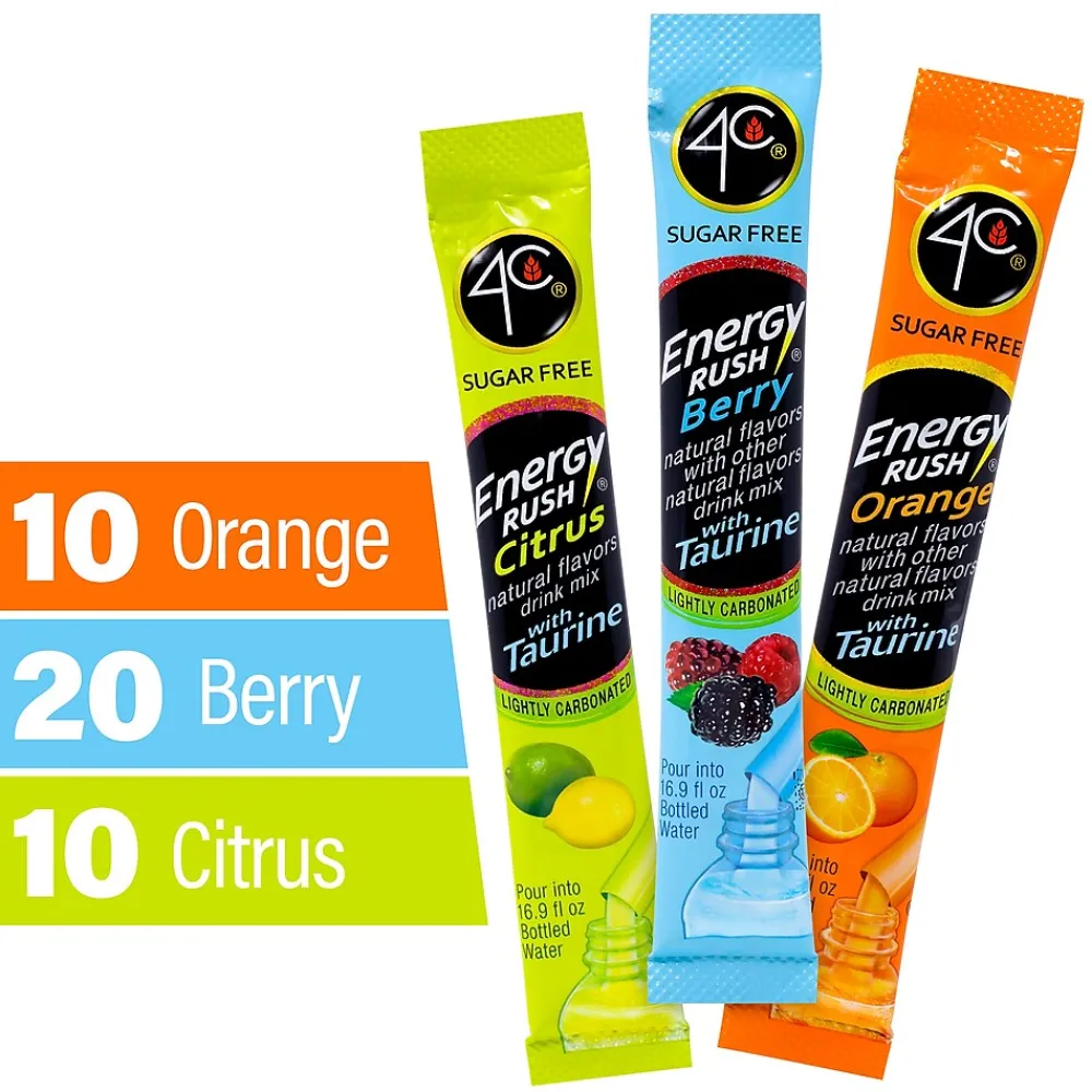 4C Energy Rush Sugar Free Drink Mix with Taurine Variety Pack 40CT