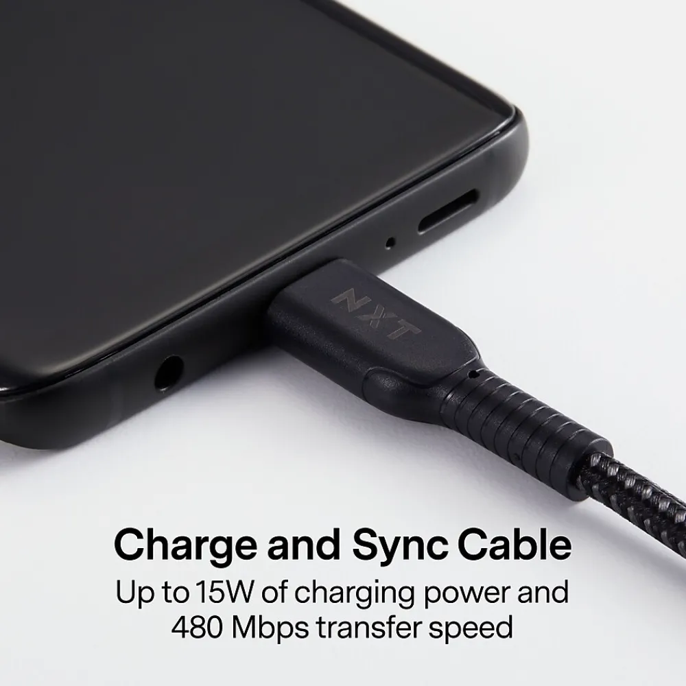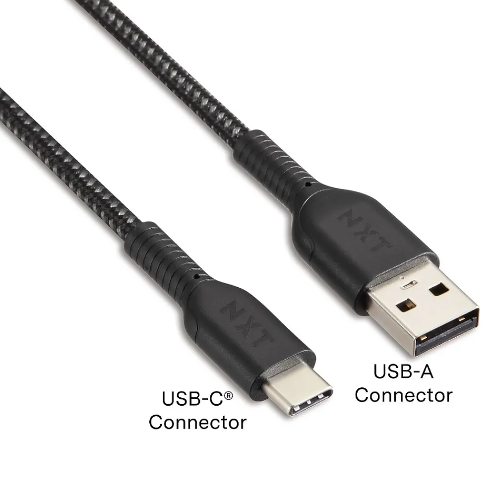 Plug this 6-foot cable into most laptops and chargers for reliable charging and syncing. The reversible USB-C adapter delivers effortless connections. With a sturdy braided design, this NXT Technologies™ USB-C to USB-A cable is ideal for daily use.
