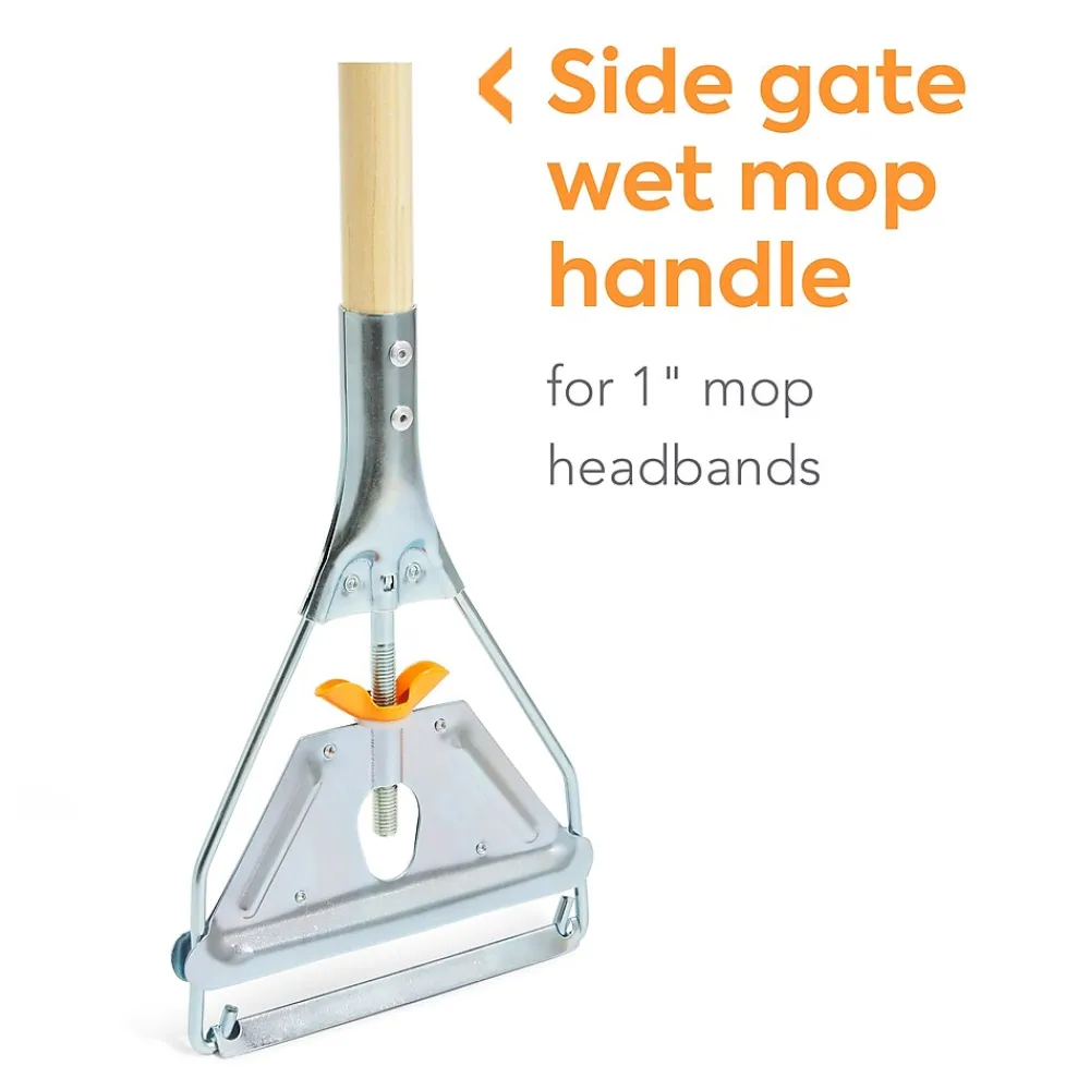 Keep your house clean and presentable with the help of this mop handle. The side-gate head helps keep mop heads securely in place. This Coastwide Professional wood side-gate mop handle has a wooden construction for enduring quality and is compatible with 1-inch headband mop heads, letting you efficiently handle spills and stains for a clean floor.