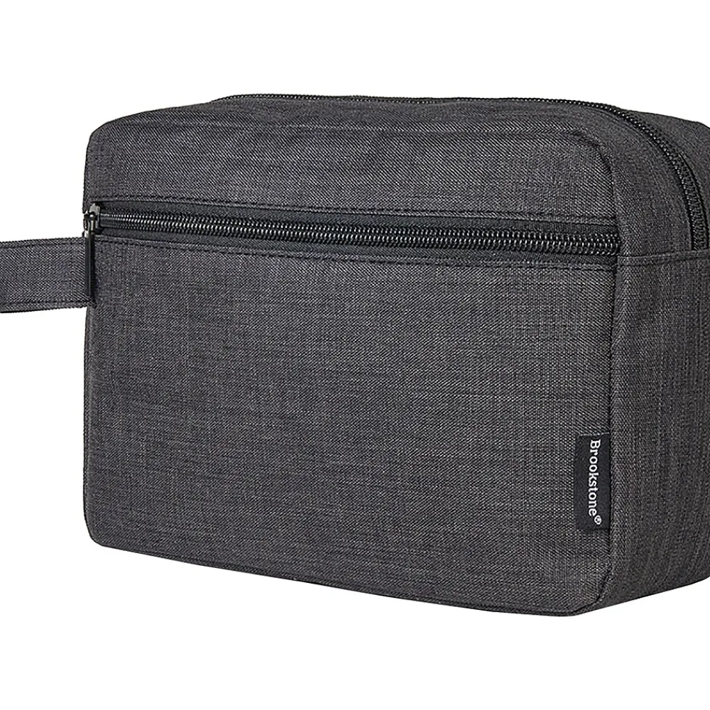 Meet your perfect travel companion. Made of a soft, lightweight fabric, the Brookstone toiletry pouch offers zipper security and room for lots of toiletries. A purposeful and practical design does not compromise on style.