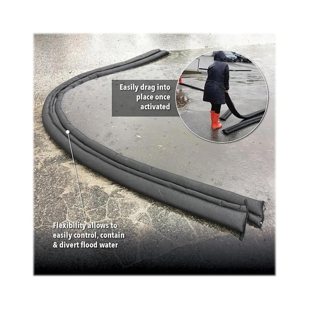 - Compact duffel bag packed with water-activated flood barriers is perfect for easy storage and transport to a high-risk flood area