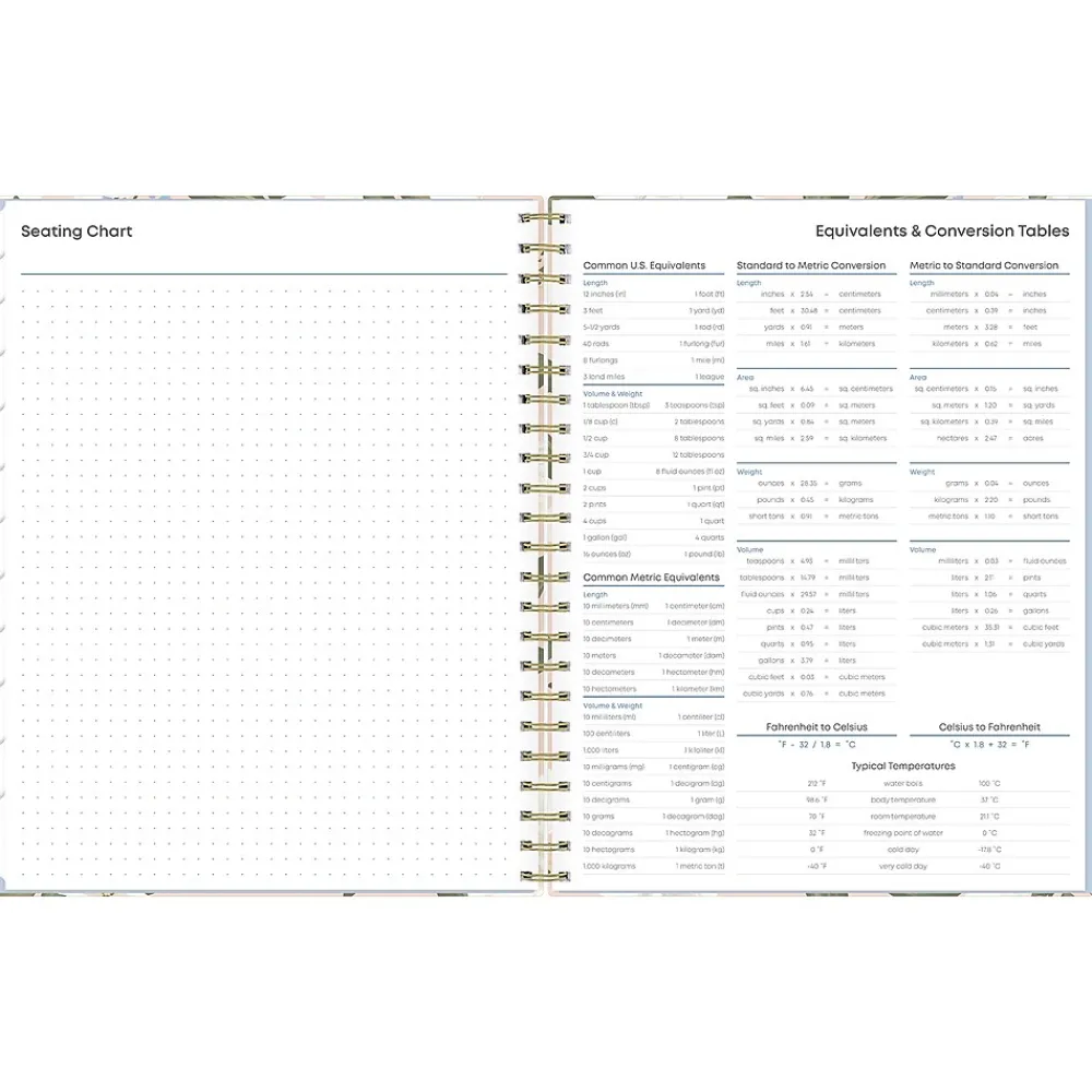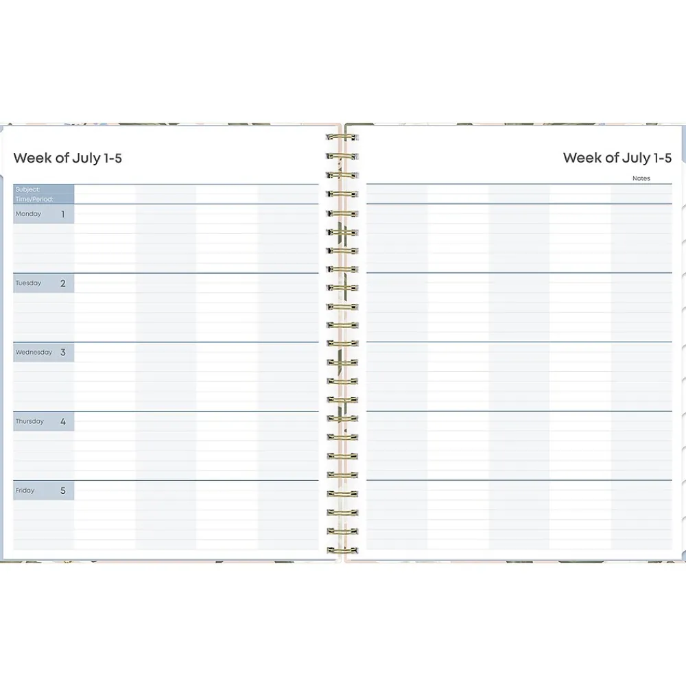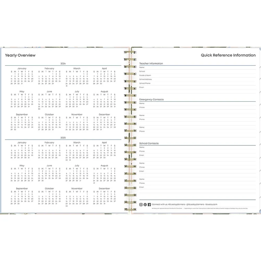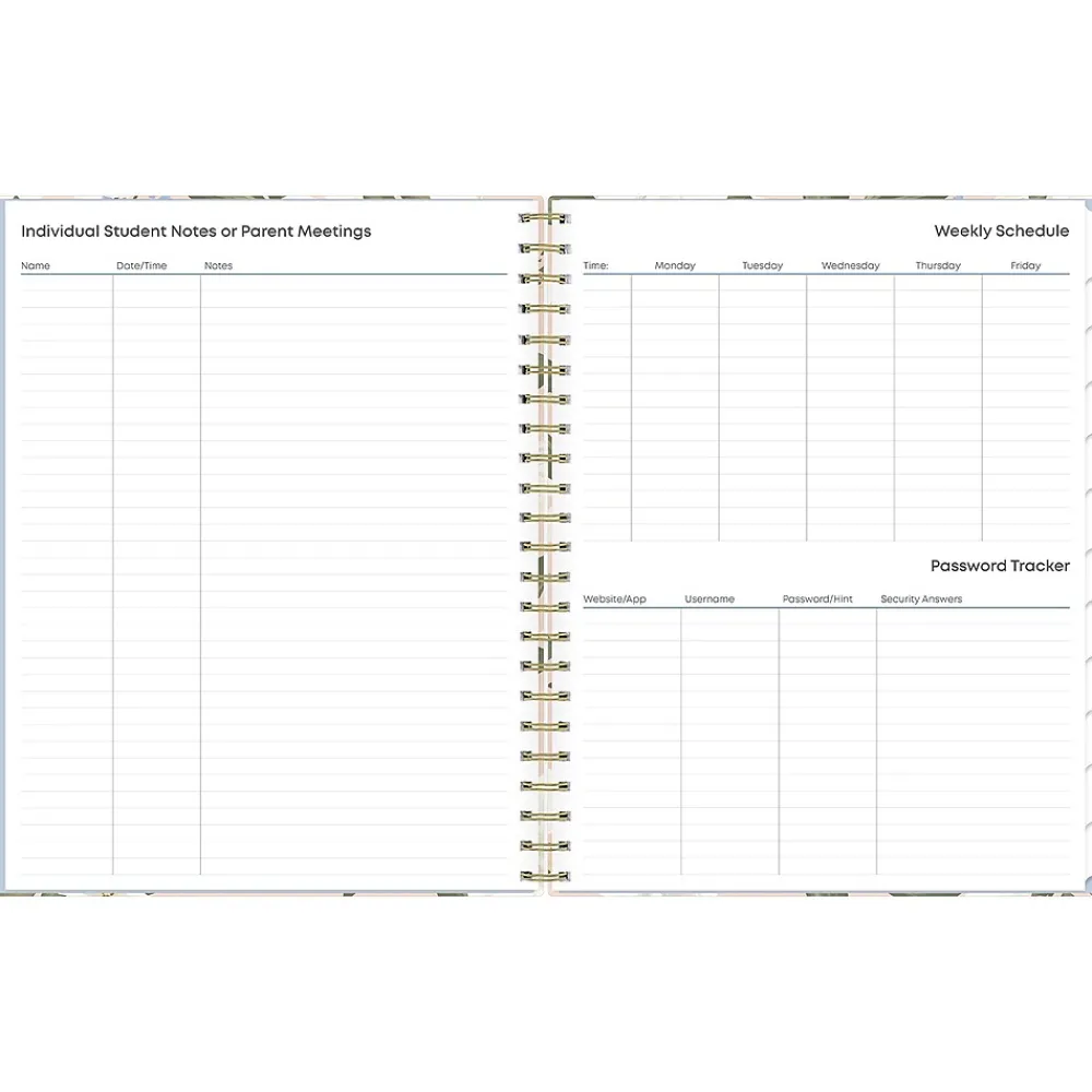 Blue Sky planners always make the grade. The Aminah Rose teacher lesson planner has weekly planning space for up to nine classes or subjects. The monthly pages are tabbed and offer plenty of room for notes. Extras include a storage pocket and pages for weekly activities, class birthdays, and holidays.