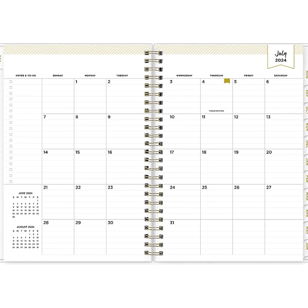 - Weekly and monthly academic planner covers a 12-month date range from July 2024 to June 2025