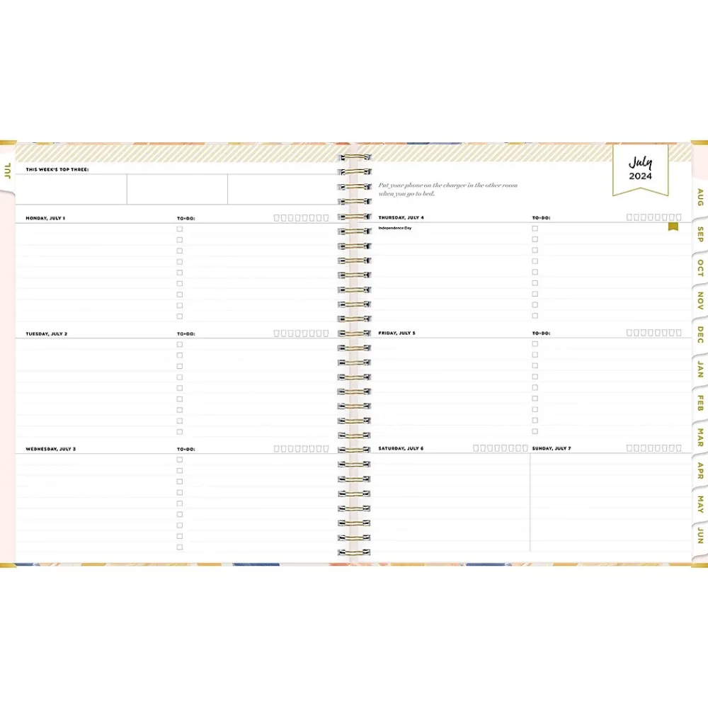 Design your year with Day Designer for Blue Sky academic planners. The In Bloom deluxe hardcover weekly and monthly planner has lined weekly views with room for your top three priorities, tabbed monthly calendars, and notes pages. Enjoy the storage pocket, stickers, and goal setting worksheets for a well-designed academic year.