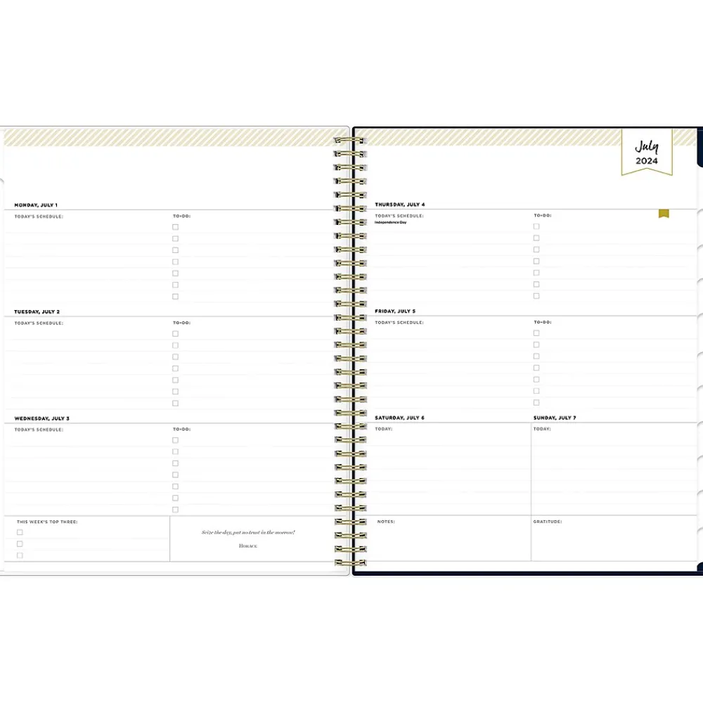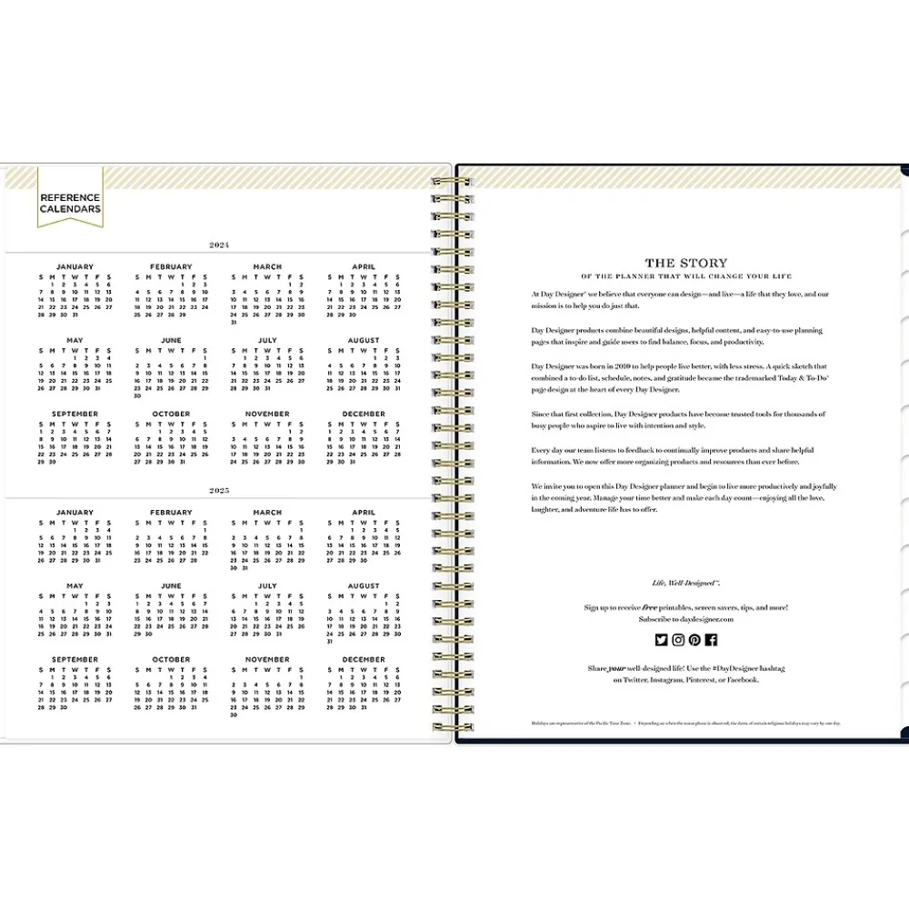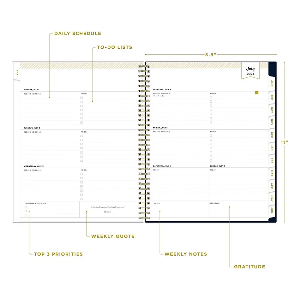 A valuable tool to organize your days, this Blue Sky Day Designer Peyton Navy large planner helps you set goals, track progress, and make the most of your time.
