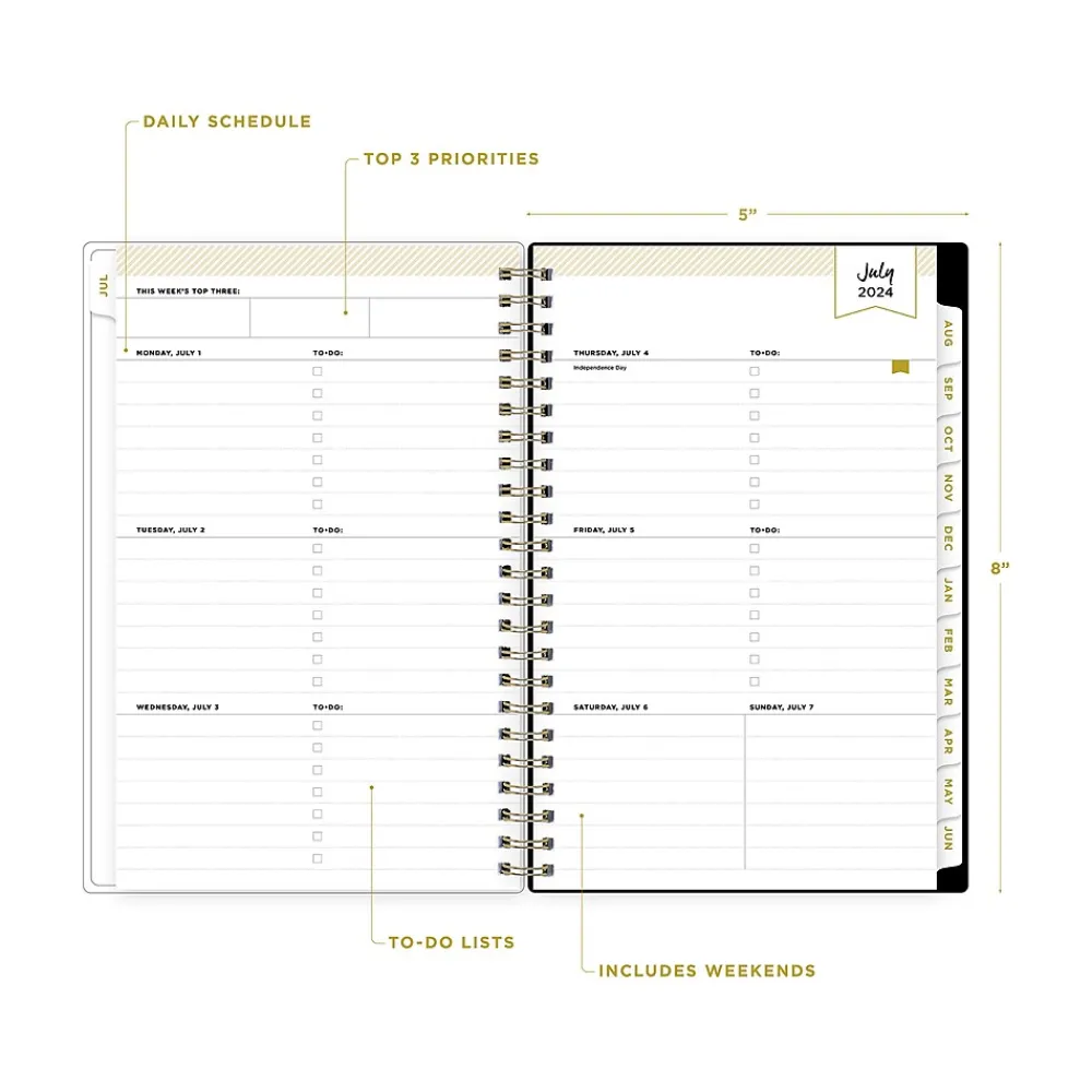 Academic Planners|Blue Sky 2024-2025 Day Designer Somerset Black 5" x 8" Academic Weekly & Monthly Planner, Plastic Cover, Multicolor (144856)