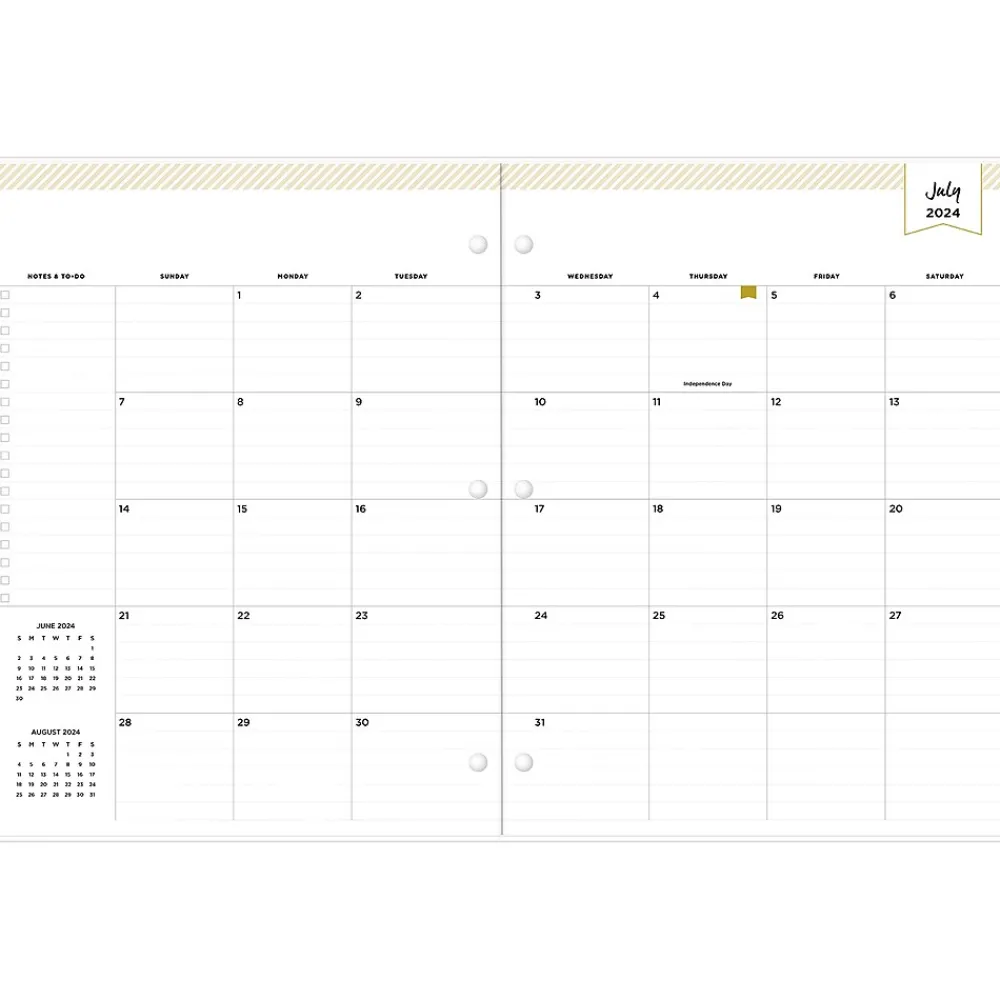 Blue Sky planners always make the grade. A valuable tool to organize your days, the Blue Sky Day Designer Spotty Small Gold monthly academic planner has a stapled spine for snag-free storing and a three-hole punch for snapping into your binder.