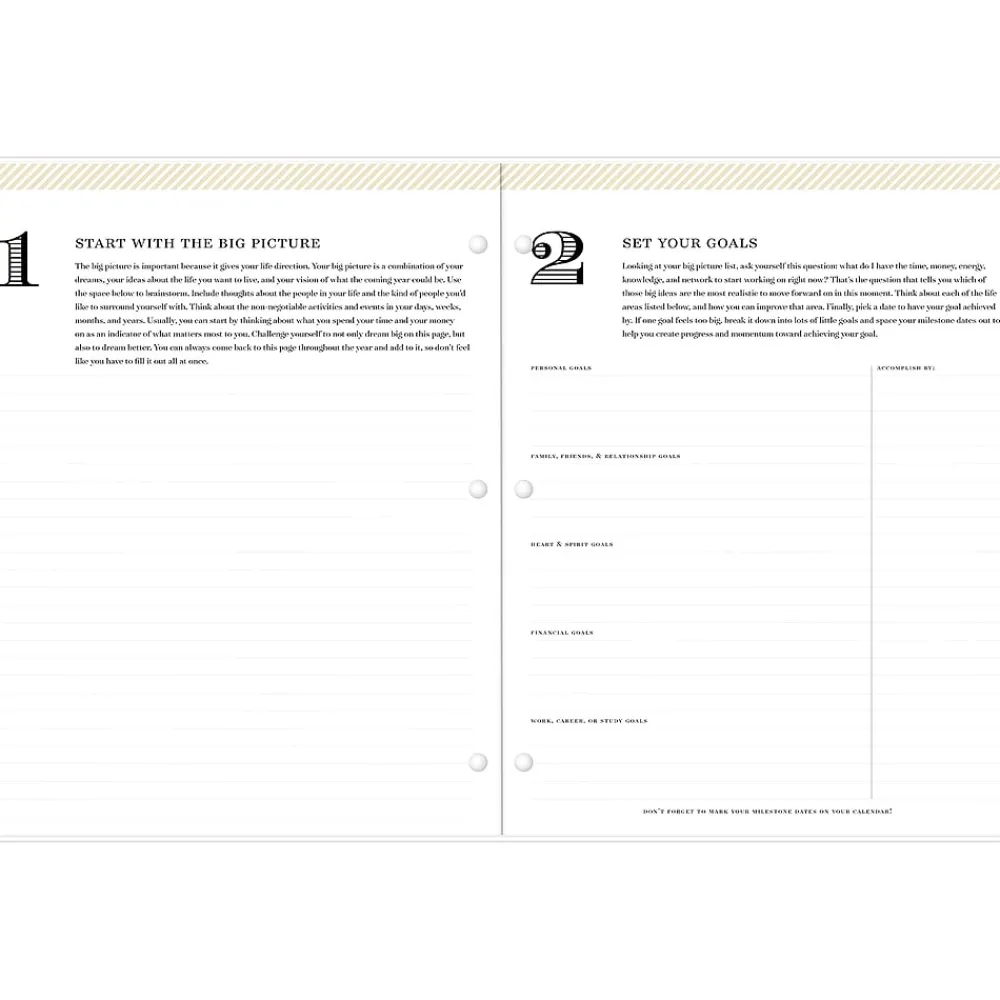 - Yearly overview and goal-setting pages