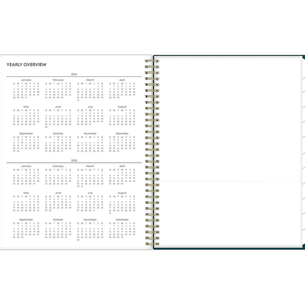 - Offers one month per two pages and one week per two pages, with space for notes and quick reference calendars