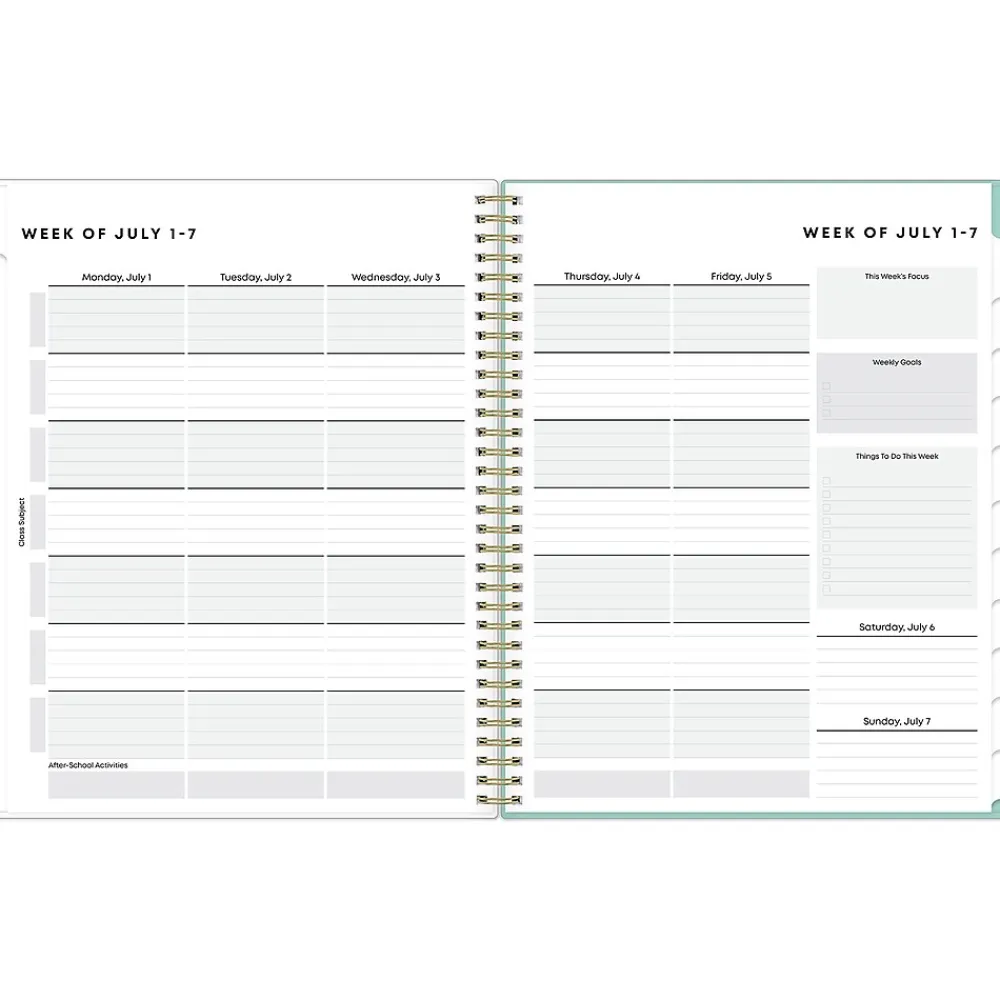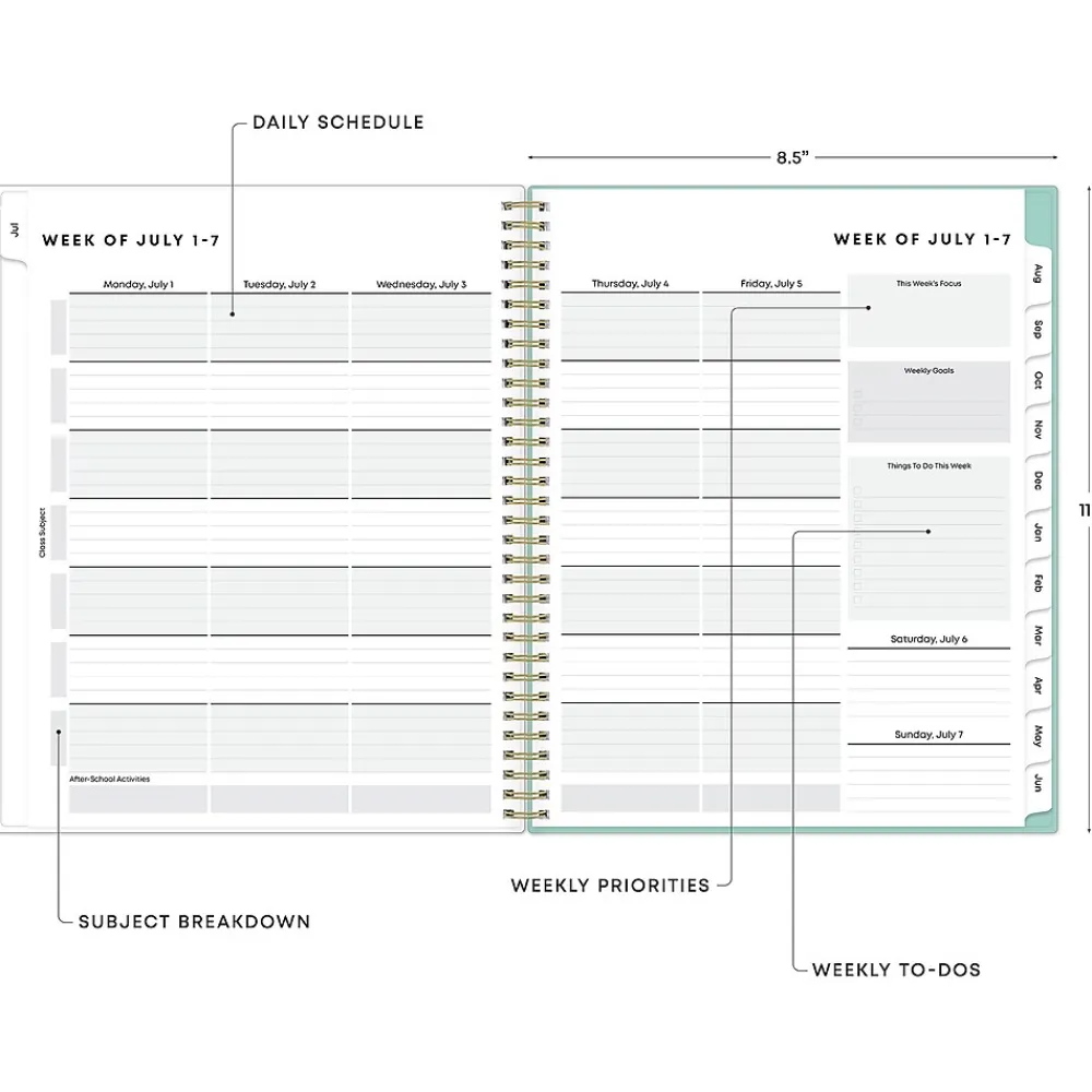 Create a study plan and stay organized with a student planner from Blue Sky. The Sandra Check student planner includes a class schedule page, weekly planning pages, monthly views with quotes, project and assignment trackers, and a storage pocket. Perfect for high school students, this 2024-2025 planner helps students feel less stressed and ready to succeed.
