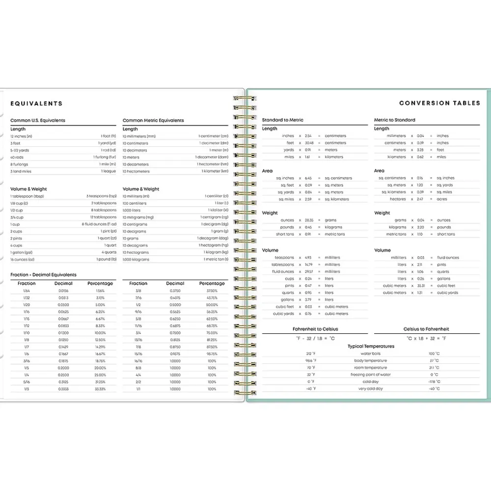 - Shows one month per two pages and one week per two pages, with space for notes and quick reference calendars