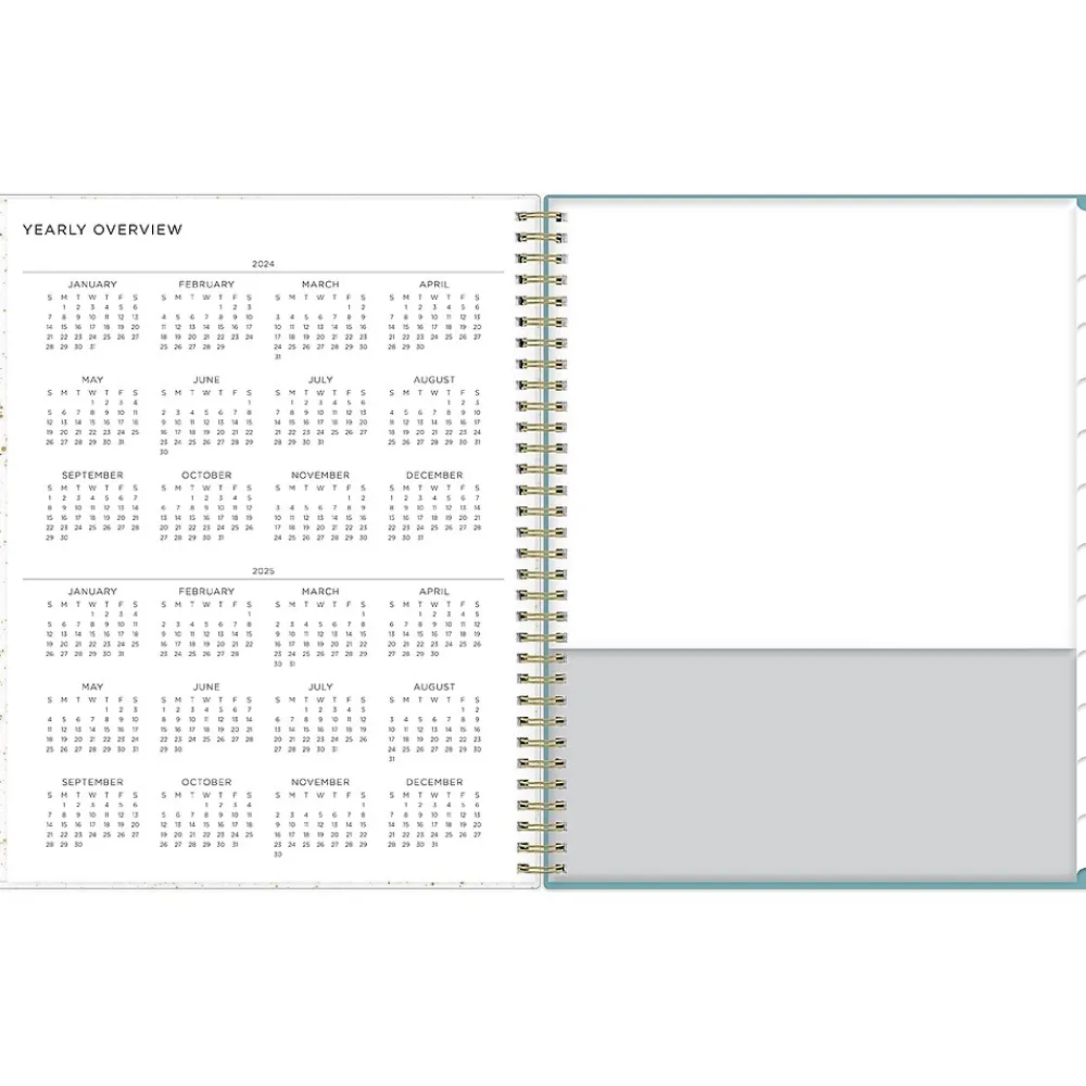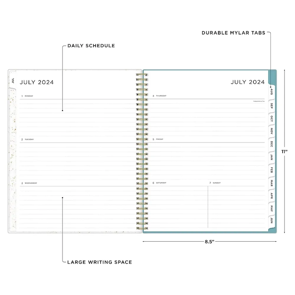 A valuable tool to organize your days, this Blue Sky Splatter Dot Jade large planner helps you set goals, track progress, and make the most of your time.