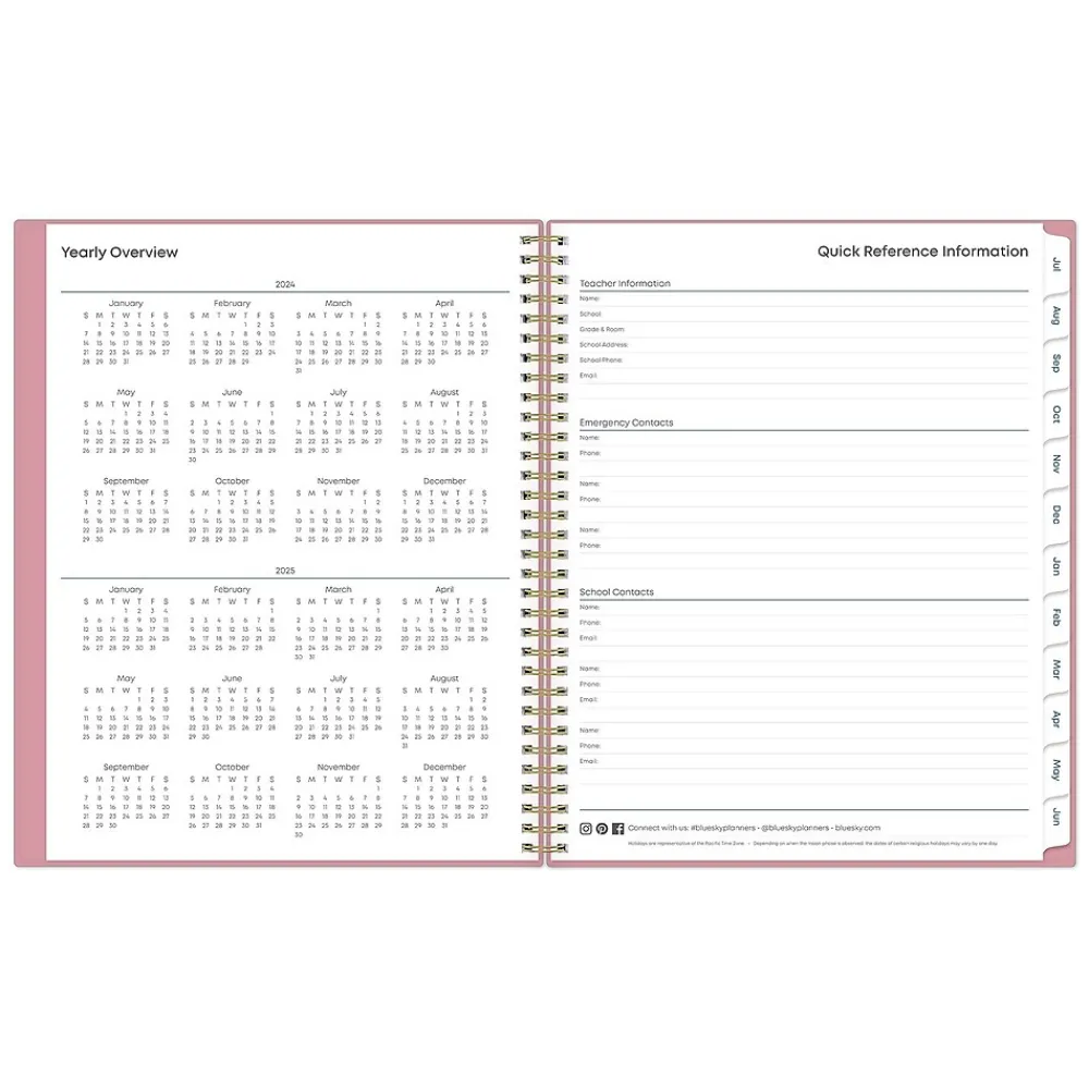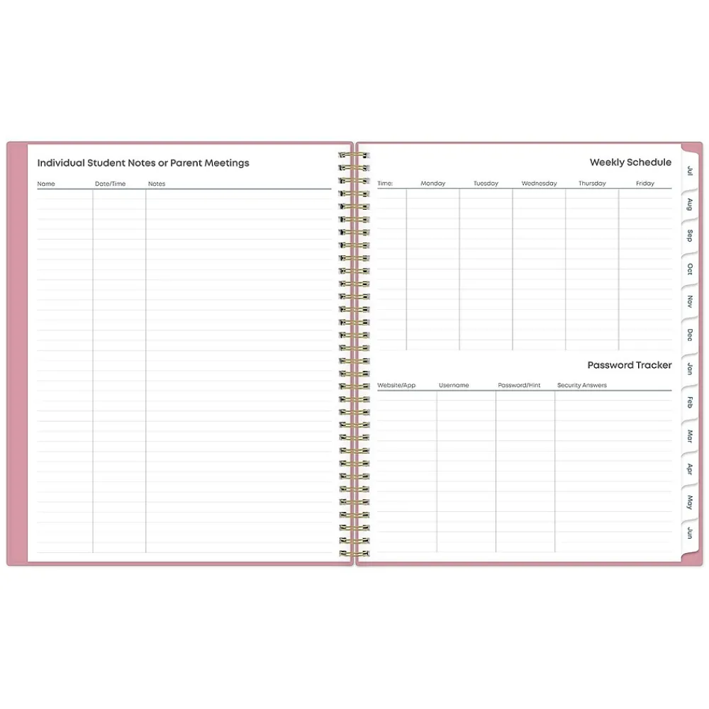 This Blue Sky Teacher Lesson planner keeps you focused and organized. This academic planner has weekly planning space for up to nine classes or subjects. Monthly pages are tabbed and offer plenty of room for notes. Extras include a storage pocket and pages for weekly activities, class birthdays, and holidays.