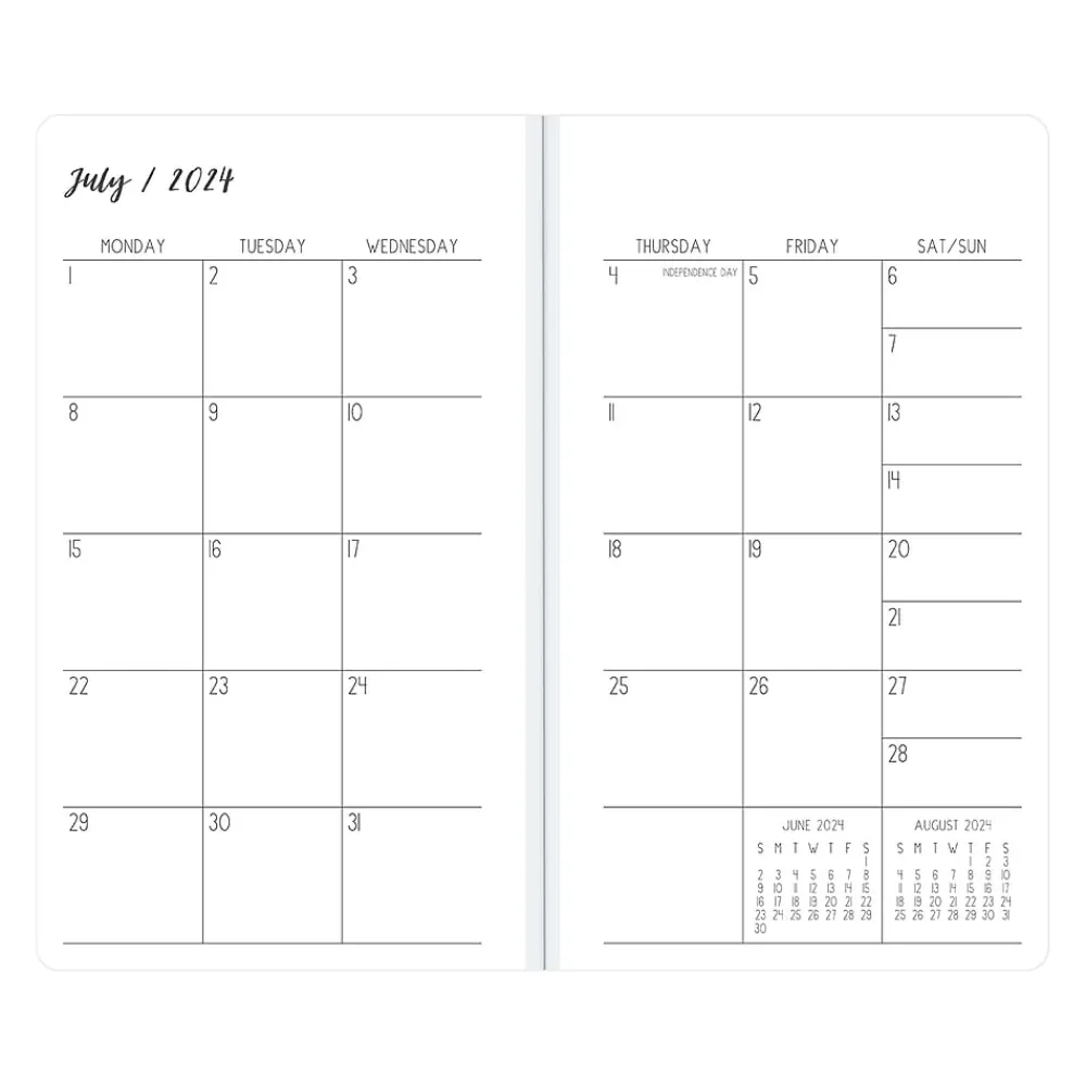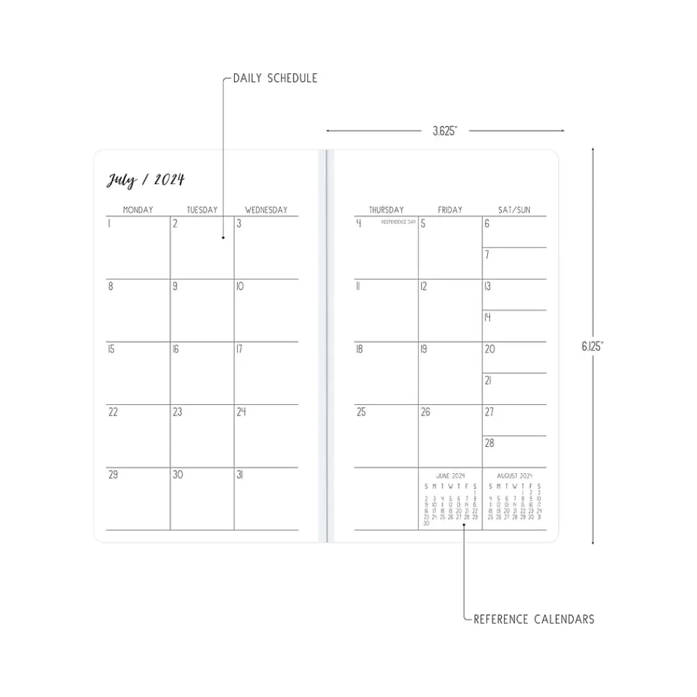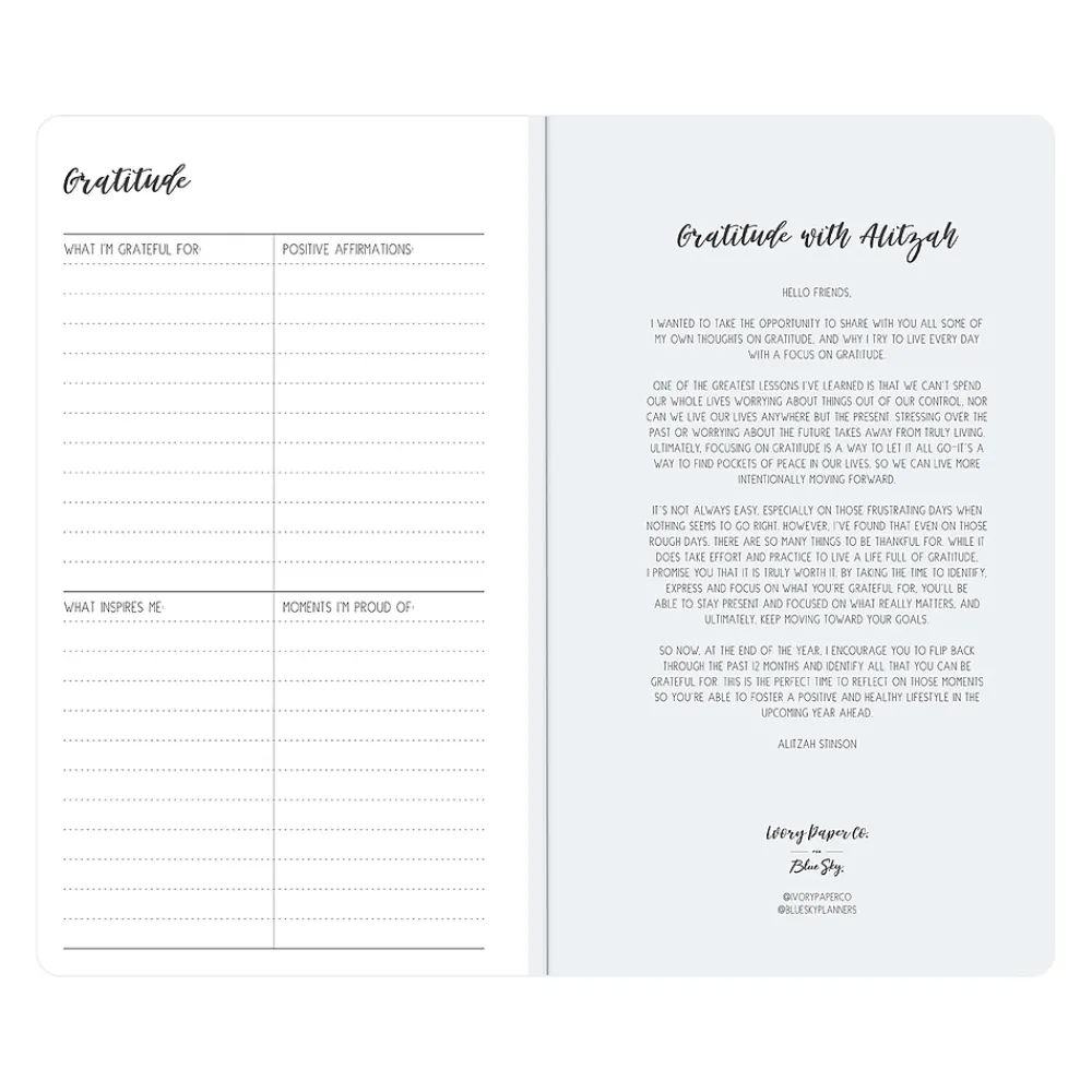 Ivory Paper Co for Blue Sky planner offers reading list, bucket list, and gratitude pages. The Daviana monthly pocket planner has a stapled spine for snag-free stowing in your pocket or bag. Enjoy 24 months of monthly views, extra notes pages, and pages for your goals, contacts, and important dates.