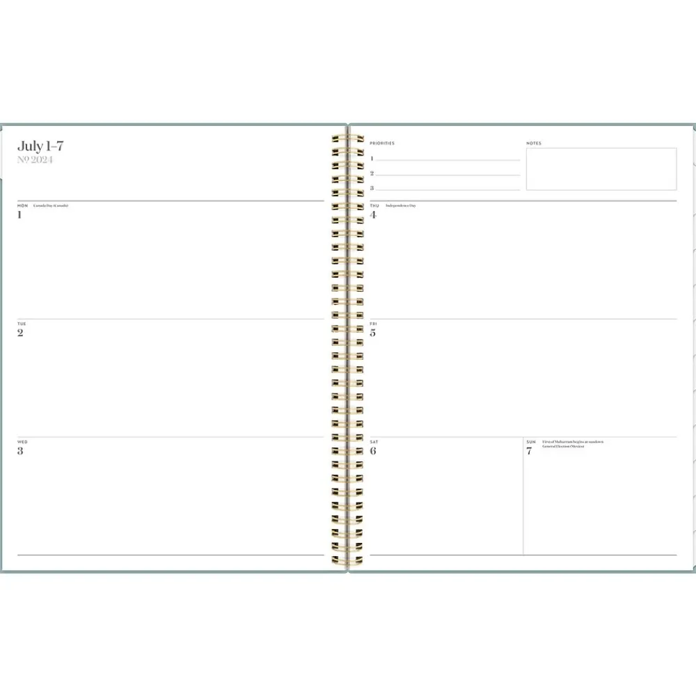 - Open weekly pages let you doodle, jot down ideas, and plan in the way that works best for you, and offer sections for notes and priorities; monthly spreads have unruled daily blocks with space for notes by week
