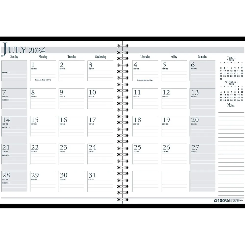 Just plan with this 2024-2025 House of Doolittle 8.5″ x 11″ academic monthly planner. Each two-page spread features a monthly view with 1.75″ x 1.75″ blocks allocated for each day, as well as previous and next month reference calendars. The planner features an additional page with a list of important holiday dates for 3 years. Use the 3-year reference calendar page for long-range planning. Monthly note space helps you stay organized.