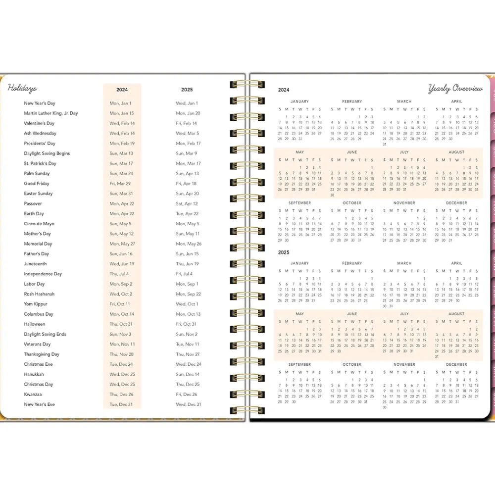 - Conveniently located at the beginning of the planner, a yearly overview highlights major holidays and observances that are easy to track
