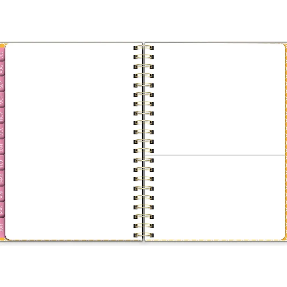 With check-in spreads and foil-enhanced stickers, this Southworth Rustic Citrus academic year planner will help you keep your personal life and school life organized. From July 2024 to June 2025, the monthly and vertical column weekly spreads allow for ample space to capture important dates and reminders. The check-in spreads provide a dedicated space to track monthly goals, thoughts, and dreams. Inside, you will find a yearly overview for a quick way to remember holidays and special events, and a storage pocket to secure loose papers and accessories. Don’t forget about the 100 foiled and fun stickers. Southworth’s durable cover and retro design coordinate beautifully with the elastic closure and metal accents to hold the pages in place. Note goals and events so that nothing important is ever missed. Every day is notable.
