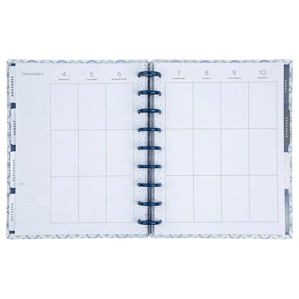 - Features dated two-page monthly and weekly spreads; the vertical layout on the weekly spreads includes three daily boxed spaces that can be divided into morning, afternoon and evening, or between work, school, and personal activities