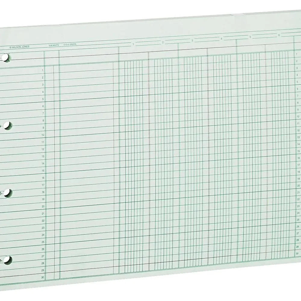 Wilson JonesĀ® Single page columnar sheet includes 6 columns and is printed on both sides for convenience. 9 1/4″ x 11 7/8″ Sheet comes with slotted holes for easy insertion and removal of sheets without disassembling binders.
