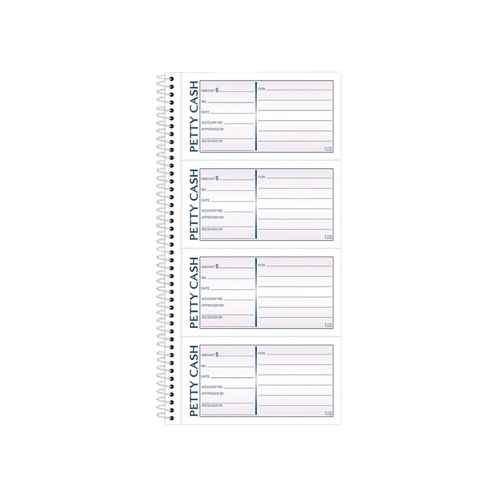 Track spending and incidentals with these petty cash books. The two-part carbonless forms let you retain a master copy of all transactions, and the preprinted pages provide dedicated space for the names of recipients and authorizing managers for convenient record-keeping. With spiral bindings, these Adams petty cash books let you flip through pages to find previous expenses and approved cash distributions.