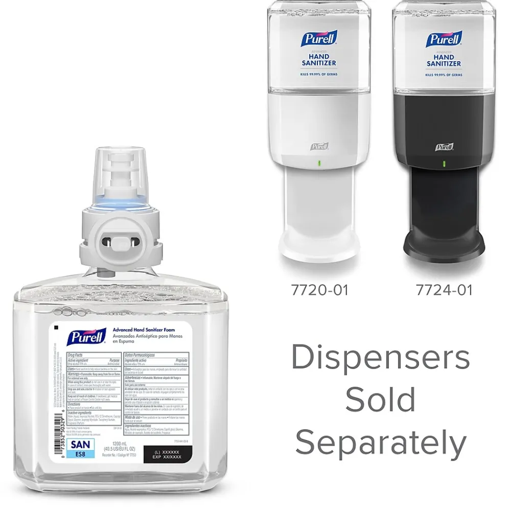 - Case Includes: 2 – PURELL® Brand Advanced Hand Sanitizer Foam, 1200 mL Refills for the ES8 Automatic Hand Sanitizer Dispenser; ES8 dispensers (SKUs 7724-01 and 7720-01) are sold separately