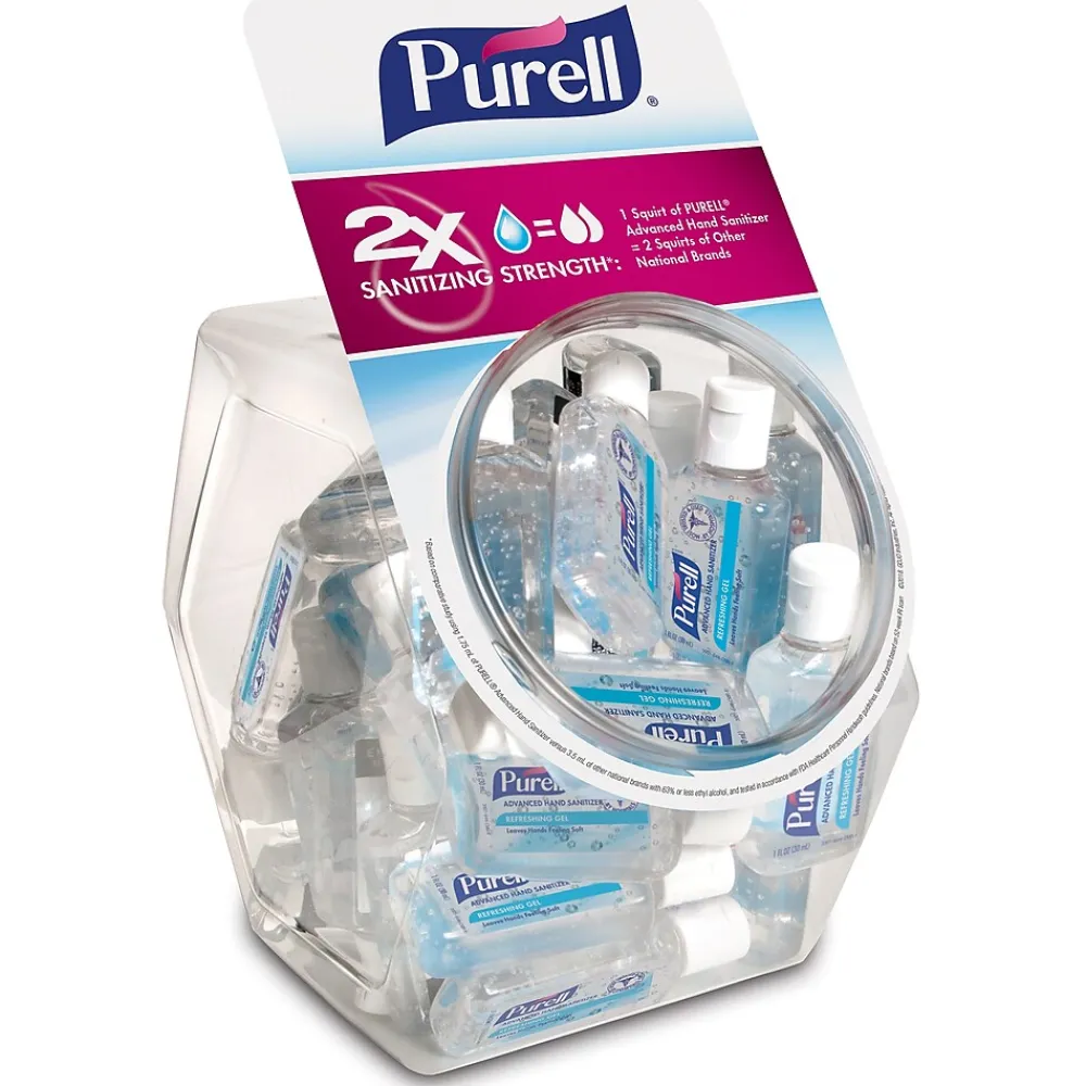 - Bowl Includes: 36 – PURELL Advanced Hand Sanitizer Refreshing Gel for Workplaces – 1 fl oz flip-cap bottles