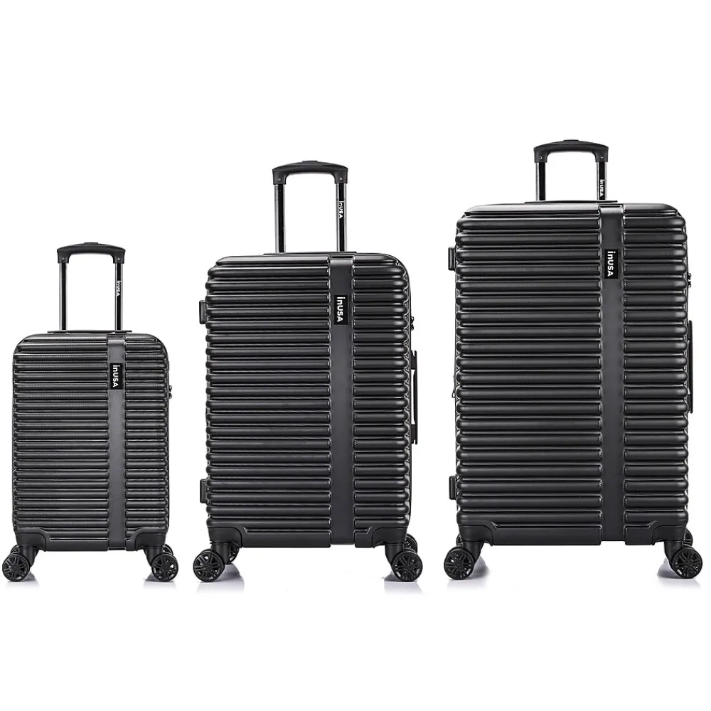 The InUSA Ally luggage set features a contemporary and functional design. Lightweight PC/ABS engineered material with brushed finish. The hard-flex construction offers maximum strength, durability, and a water-/scratch-resistant finish. The 24”H and 28’H’ suitcases expand 2” for extra space. Built-in three-digit TSA approved combination lock. Features smooth-gliding oversized zippers.