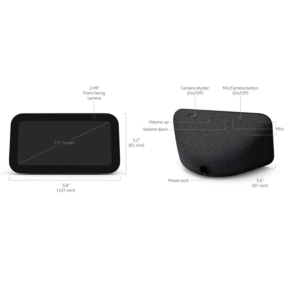 The Amazon Echo Show 5 (3rd Gen) includes a 5.5″ display, so you can see news and weather at a glance, make video calls, view compatible cameras, stream music and shows, and more. Set alarms and timers with your voice and create routines, so you can personalize how you wake up and wind down. The Echo Show 5 features improved speaker quality, delivering clearer vocals and deeper bass for vibrant sound. Just ask Alexa to play music, podcasts, audiobooks, or stream your favorite shows and enjoy a more dynamic audio experience. The Echo Show 5 speeds up Alexa responses so that you can quickly manage your smart home, such as turning off compatible lights around your house without having to get out of bed. You can also schedule routines or even start them with your motion. When you walk into a room, the lamp can turn on or music can start to play, just like that.