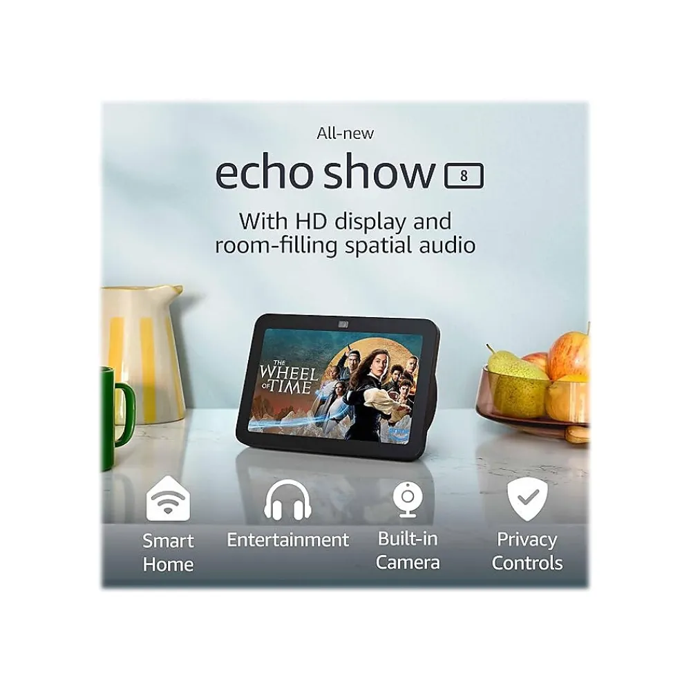 Entertainment is more immersive with spatial audio and an 8″ HD touch screen. Video calling is crisper with high-quality sound and a 13MP camera. And your home is more connected than ever with the built-in smart home hub. Content on Prime Video, Netflix, Fire TV Channels, and more comes to life with the HD display and room-filling spatial audio. Ask Alexa to stream Amazon Music, Apple Music, or Spotify. Subscriptions for some services are required. Pair and control devices compatible with Zigbee, Matter, and Thread without a separate smart home hub. Manage cameras, lights, and more using the display or your voice, or activate routines via motion. Also supports connectivity via Bluetooth and Wi-Fi.