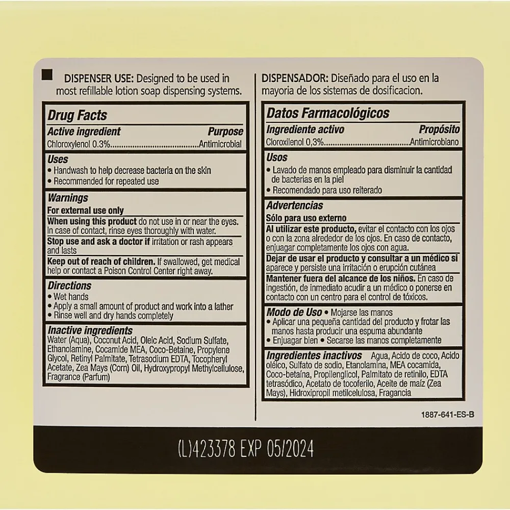- Contains chloroxylenol (PCMX), a broad-spectrum antimicrobial agent