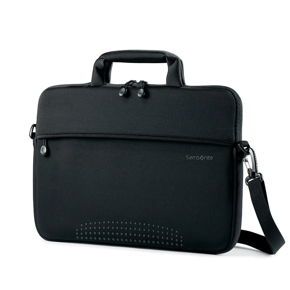 Samsonite Aramon NXT Carrying Case for 14″ Notebook in Black is constructed with neoprene, a synthetic rubber for strength and durability. Featuring zips around three sides and a zippered accessory pocket, it can also be used as a backpack.