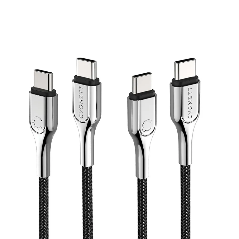 The 3 ft. Cygnett Armored USB-C to USB-C Cable supports higher levels of power, up to 5 amps/100 watts of turbo charging, so you can power-up your USB-C laptop, tablet, or smartphone at breakneck speed. It allows you to experience up 480 Mbps transfer speeds so you can quickly sync your photos, music, and data to your existing USB-C enabled device. Elongated cable connectors forged from a metallic alloy provide a refined aesthetic, strength, durability and superior scratch resistance. The robust cable design the exterior double braiding allows the cable to resist abrasion while maintaining flexibility for ease of use. The cable connectors forged from a metallic alloy provide a refined aesthetic and superior scratch resistance.
