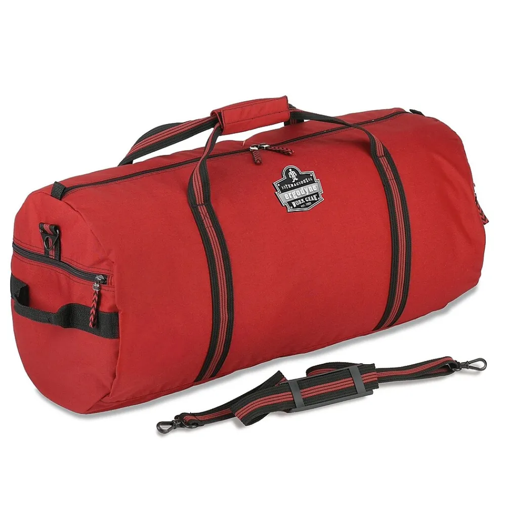 Ergodyne Arsenal 5020 Red medium duffel bag contains removable and adjustable shoulder strap/strap grabber for extra comfort. Duffel bag has 8 heavy-duty zippers and two end zipper pocket for convenient.