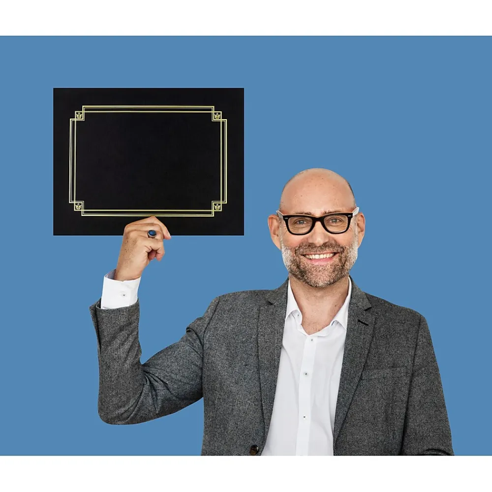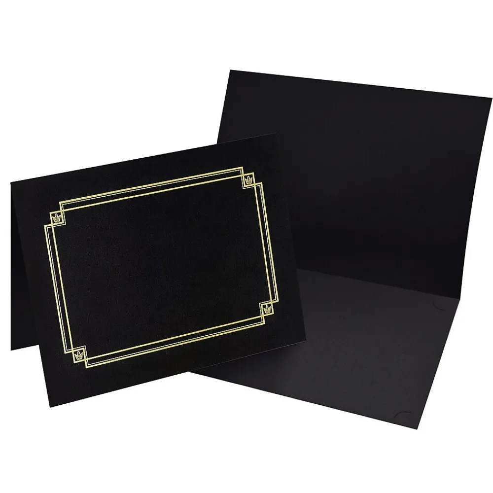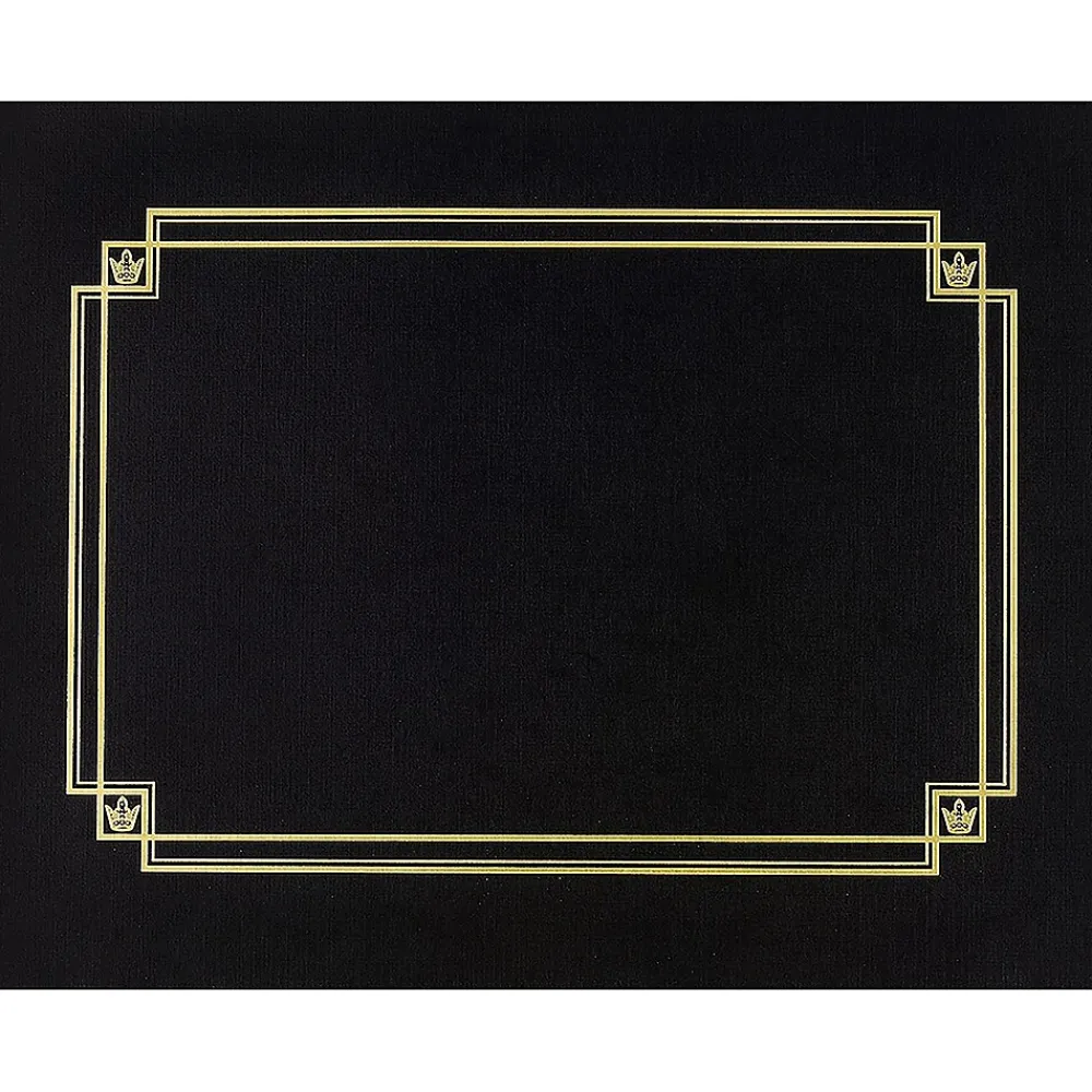 Great Papers Linen certificate cover in black color measures 12 13/20″ x 9 3/4″ and features embossed gold foil. Cover is die-cut to hold any certificates and is acid as well as lignin free, sold as 3 per pack.