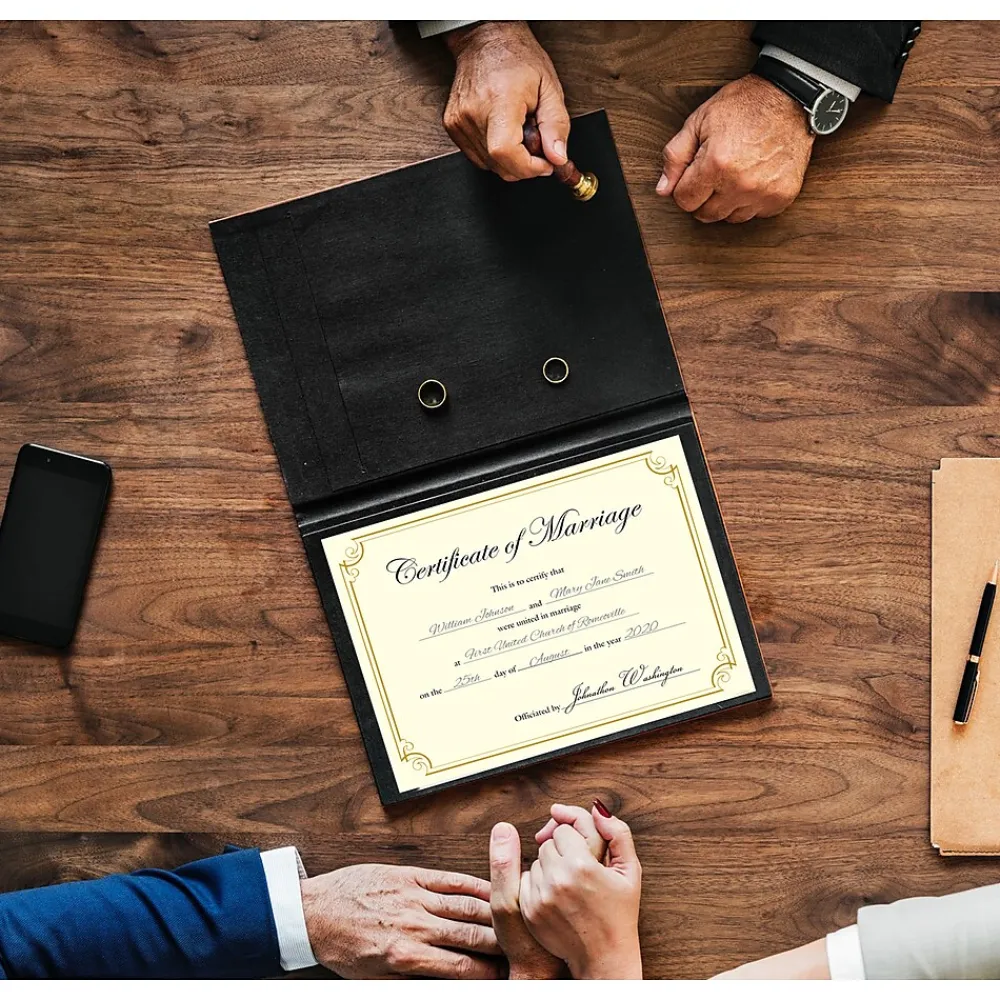 Present these golden scroll achievement certificates to contest winners, program graduates and top employees. These letter-sized certificates are bordered with a scroll pattern in gold foil to emphasize the importance of the achievement. This pack includes 12 printer-compatible Great Papers golden scroll certificates to help recognize full teams or departments.